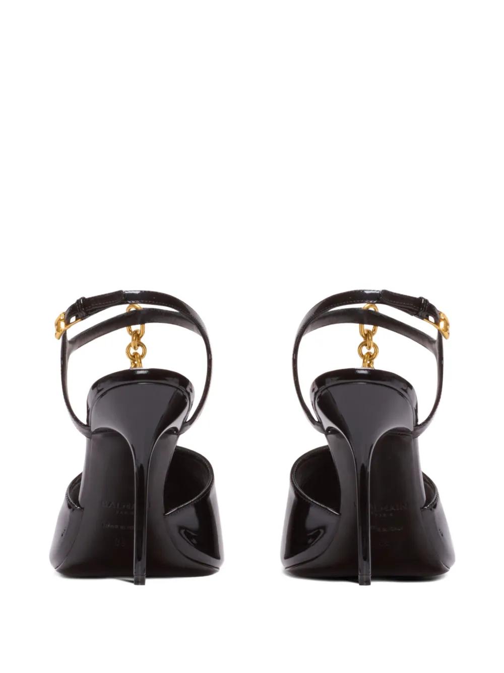 black buckle-strap fastening open toe high stiletto heel chain-link detailing