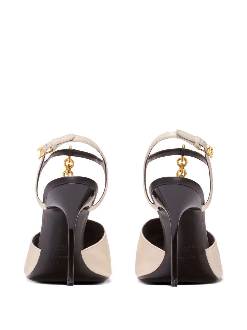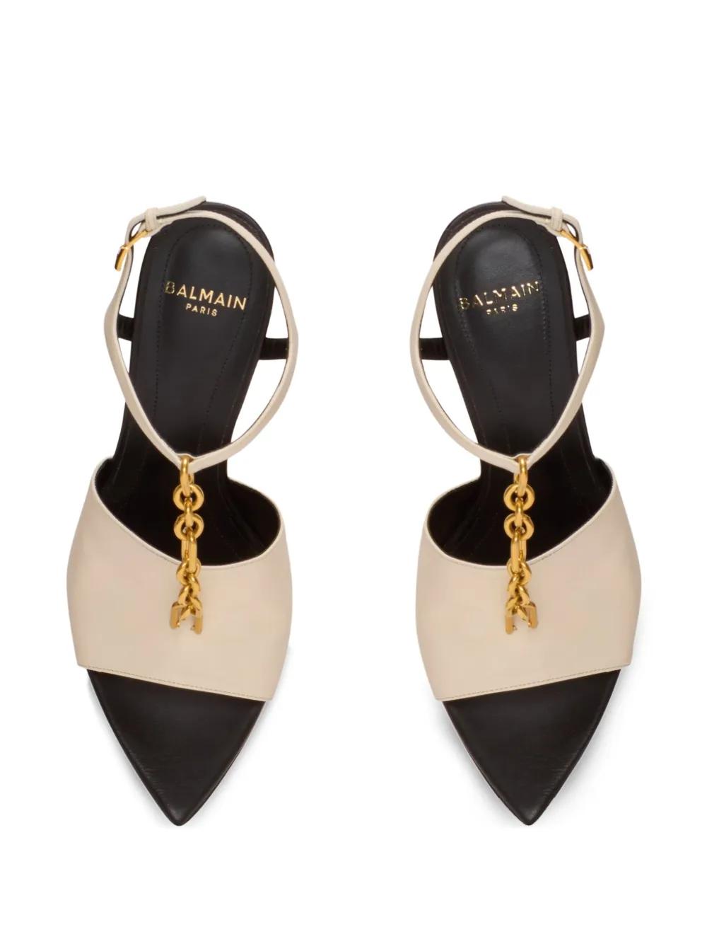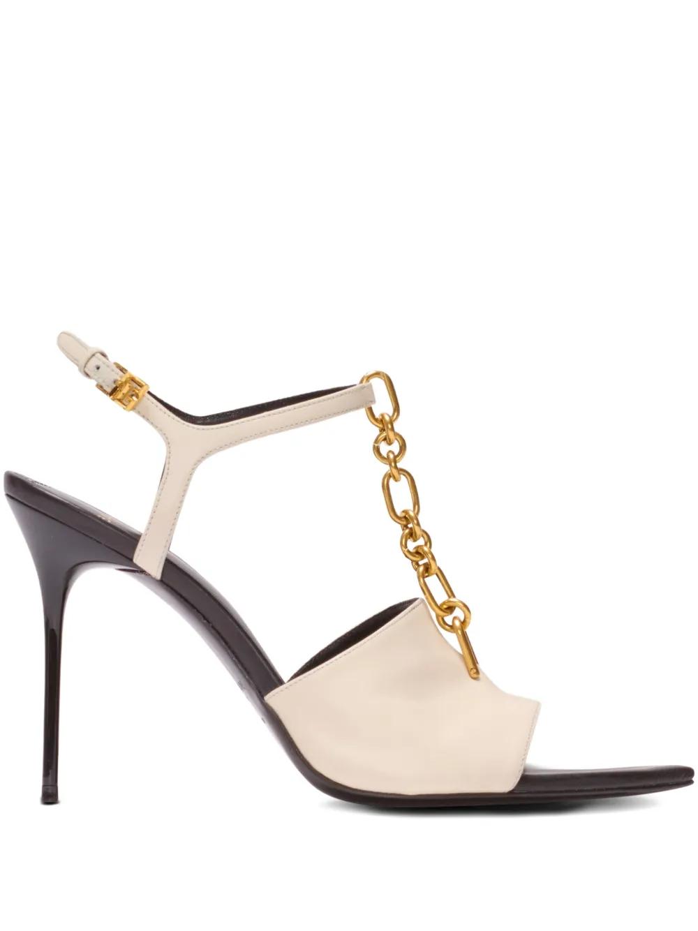 beige buckle-strap fastening open toe high stiletto heel chain-link detailing
