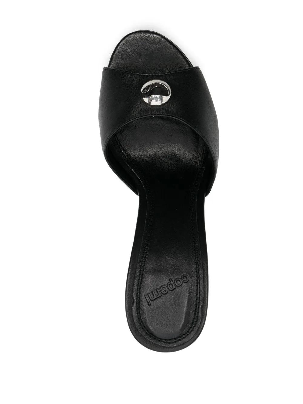 jet black calf leather silver-tone logo plaque branded leather insole open toe 95mm high heel