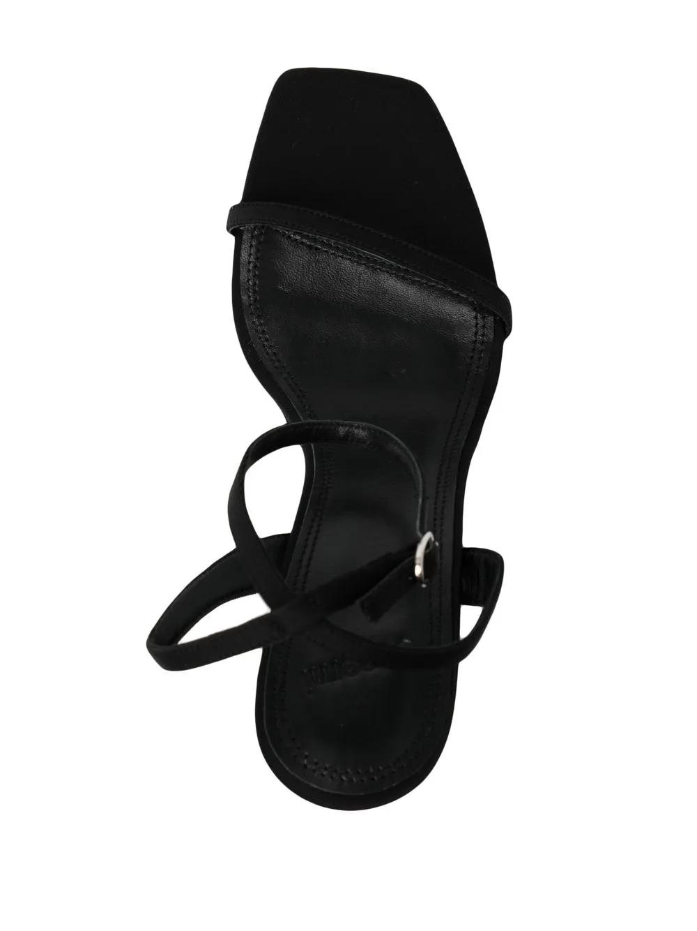jet black leather buckle-fastening ankle strap open toe branded insole high sculpted heel
