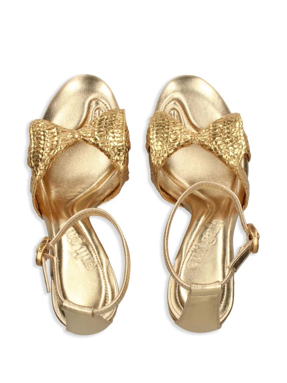 gold-tone buckle-fastening ankle strap crossover strap at the toe 100mm sculpted heel