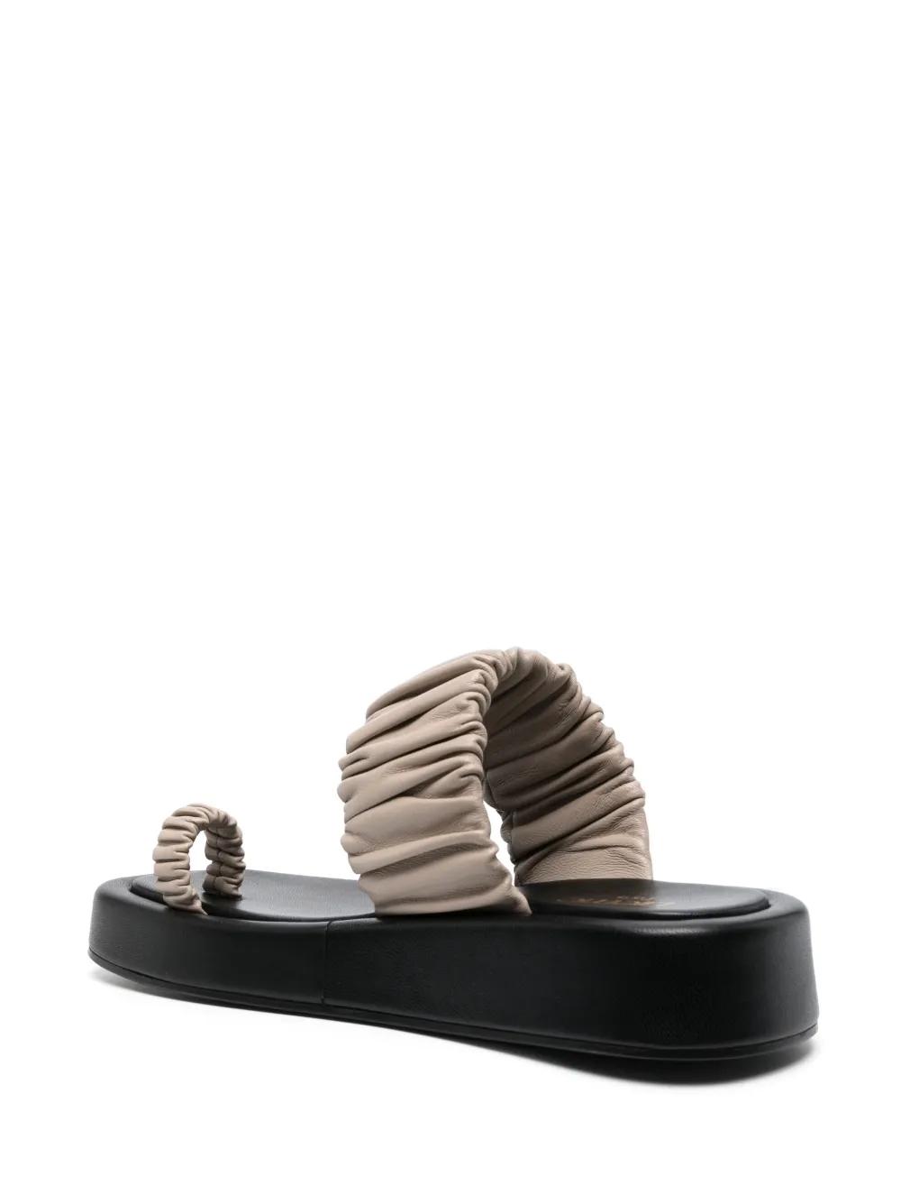 taupe/black calf leather shirred effect open toe internal logo stamp slip-on style 39mm flatform sole