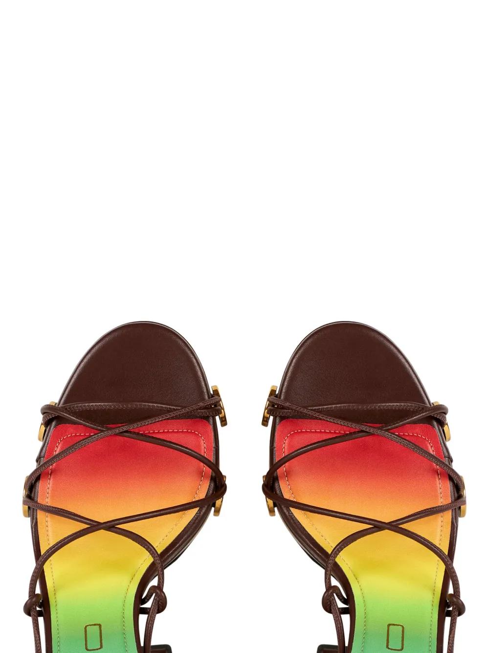 brown/multicolour calf leather strap detailing signature Pegaso motif open toe tie-fastening ankle strap platform sole high cone heel