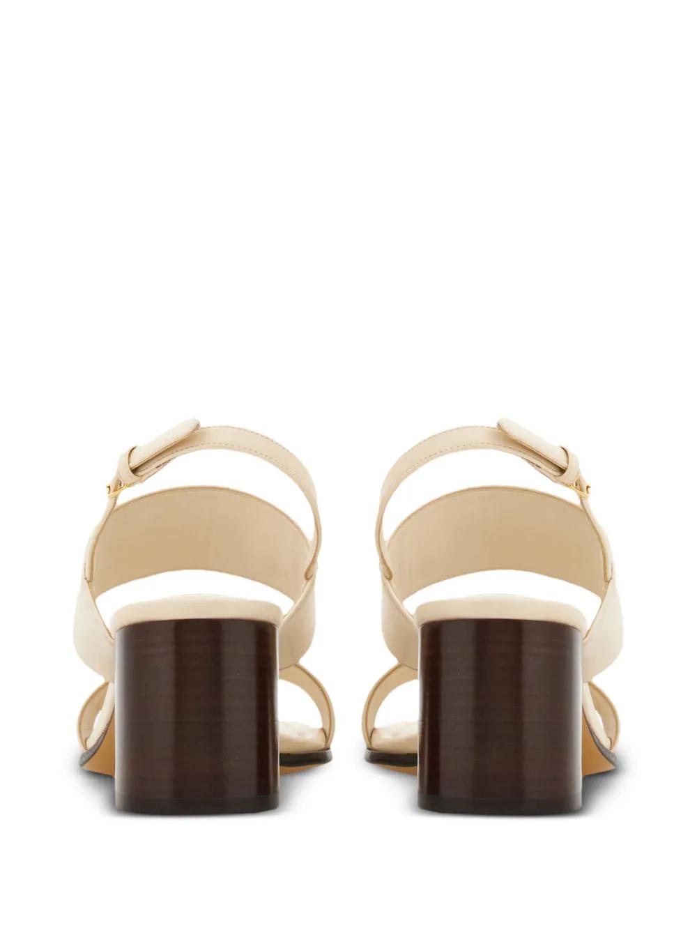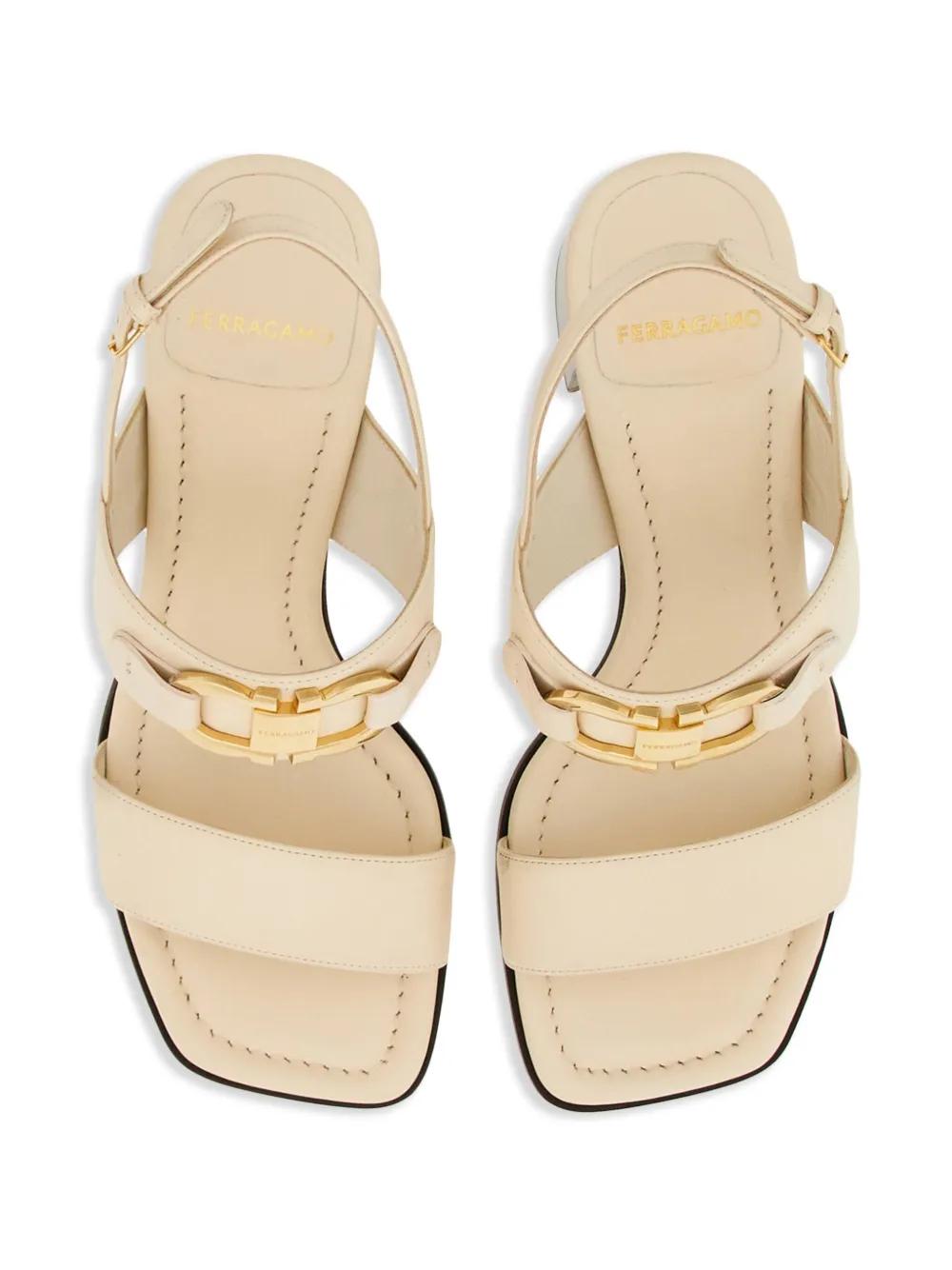 cream white lambskin leather lining gold-tone hardware Gancini buckle square open toe buckle-fastening ankle strap branded footbed 55mm block heel leather sole