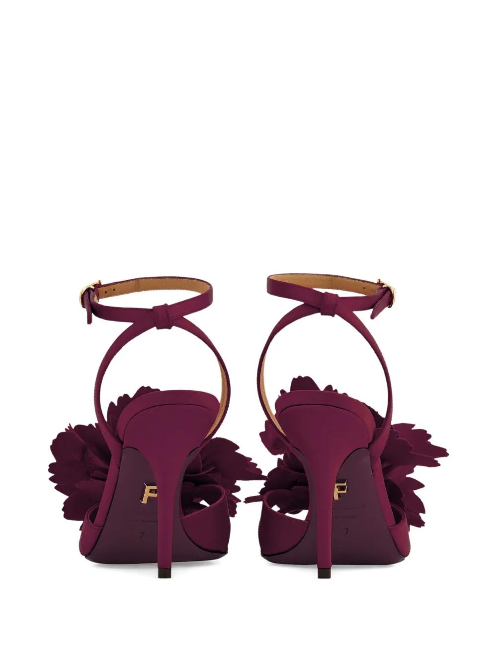 dark red flower embellishment ankle strap buckle fastening high heel branded footbed