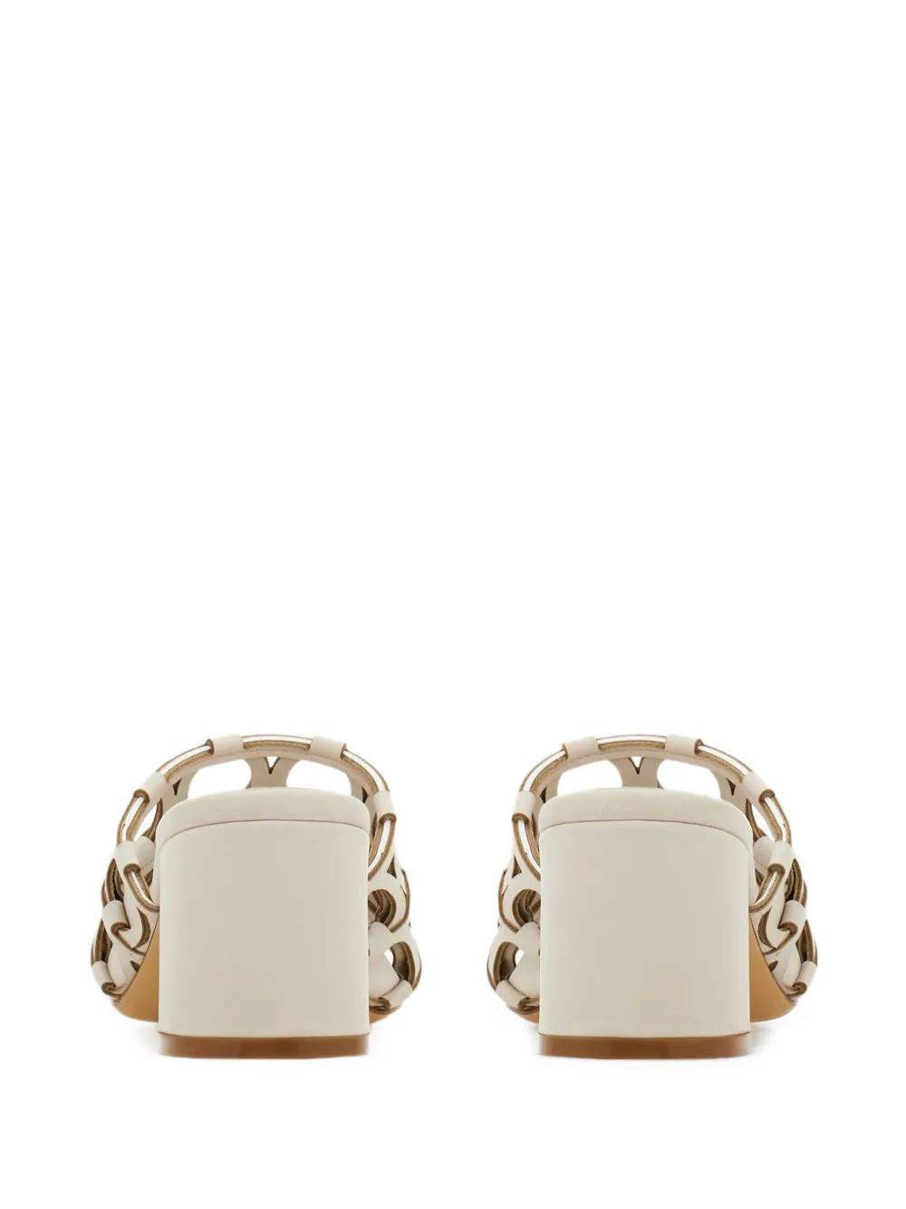 beige cut-out Gancini design block heel open toe slip-on style