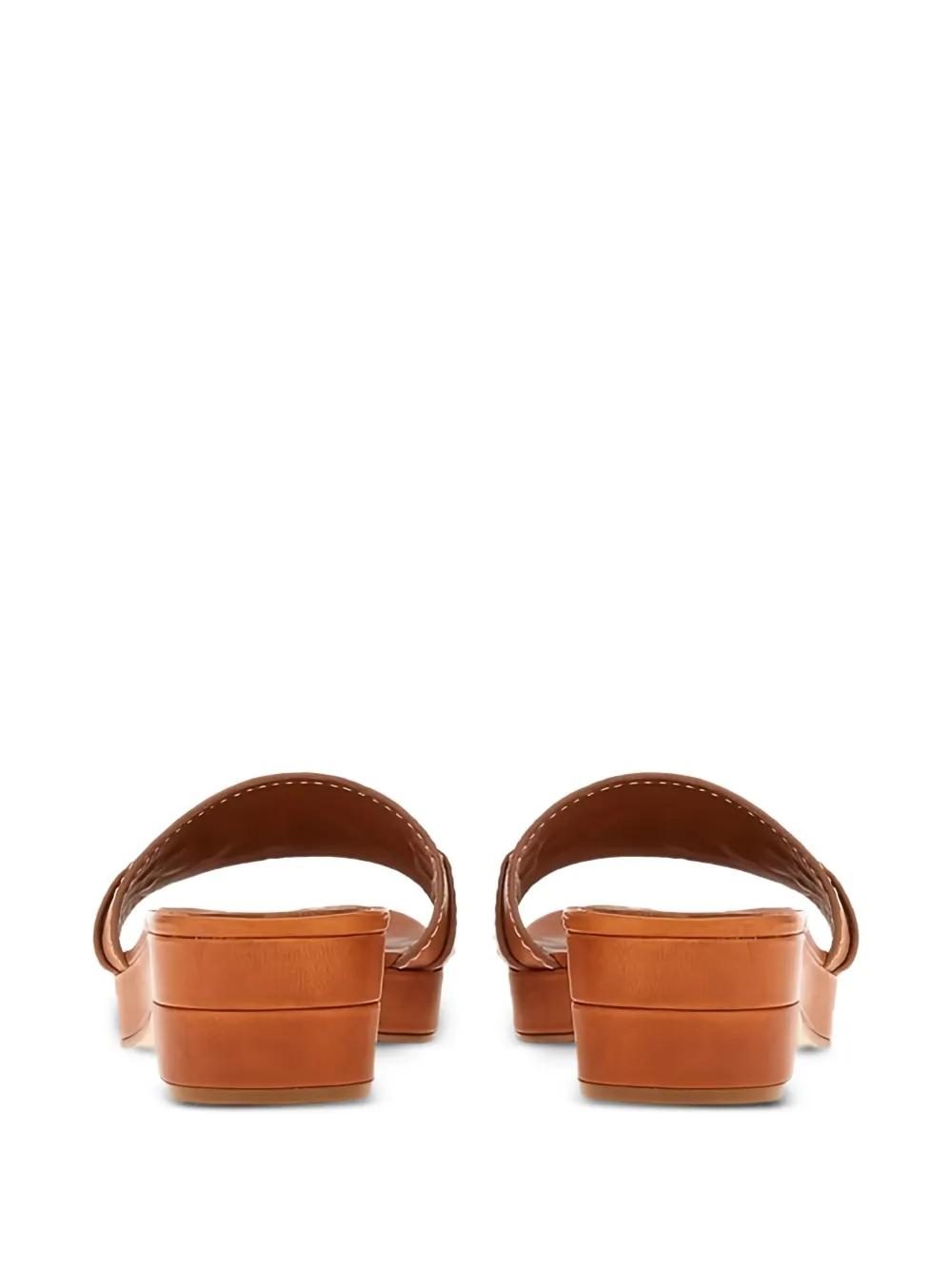 brown stitch detail platform sole buckle fastening ankle strap flat heel