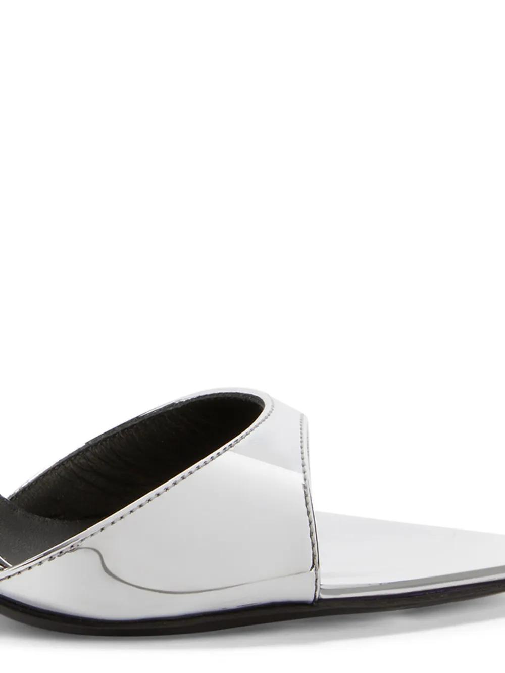 silver-tone leather metallic effect mirrored finish single toe strap pointed toe slip-on style branded footbed 70mm mid heel faux-leather sole