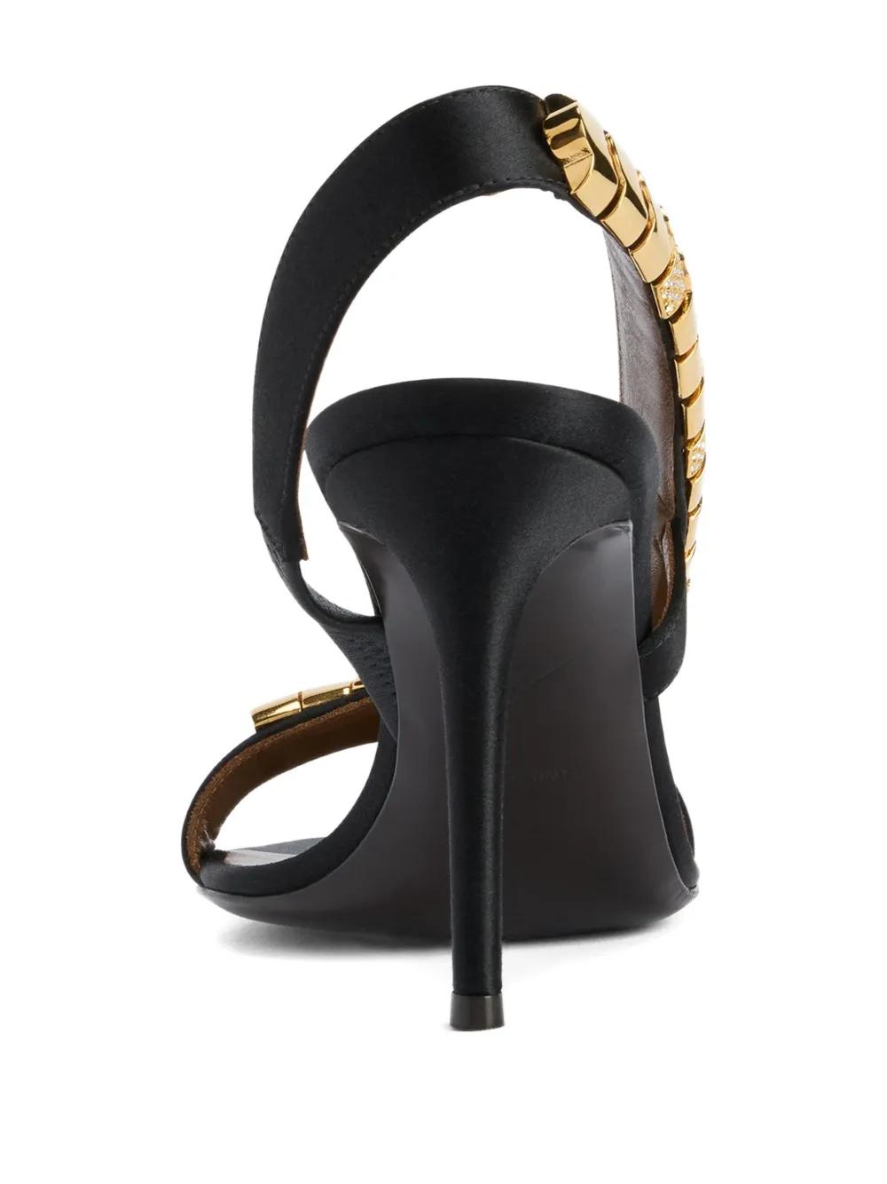 black gold-tone embellishment stiletto heel slingback strap open toe embellished strap