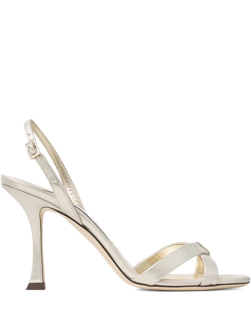 gold-tone side buckle fastening leather sole branded leather insole almond open toe Wardrobe Icon