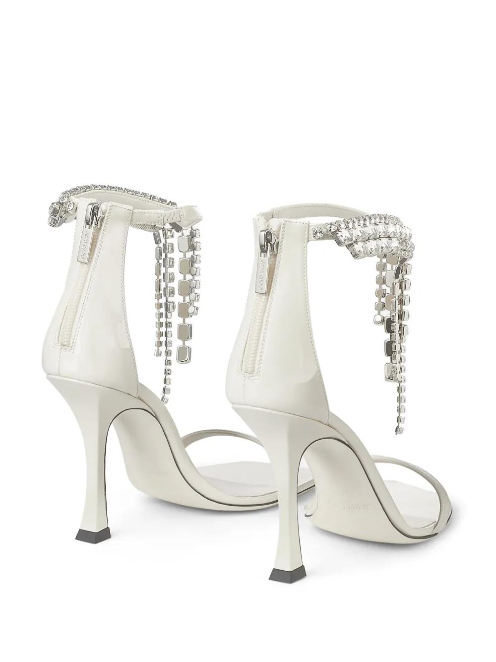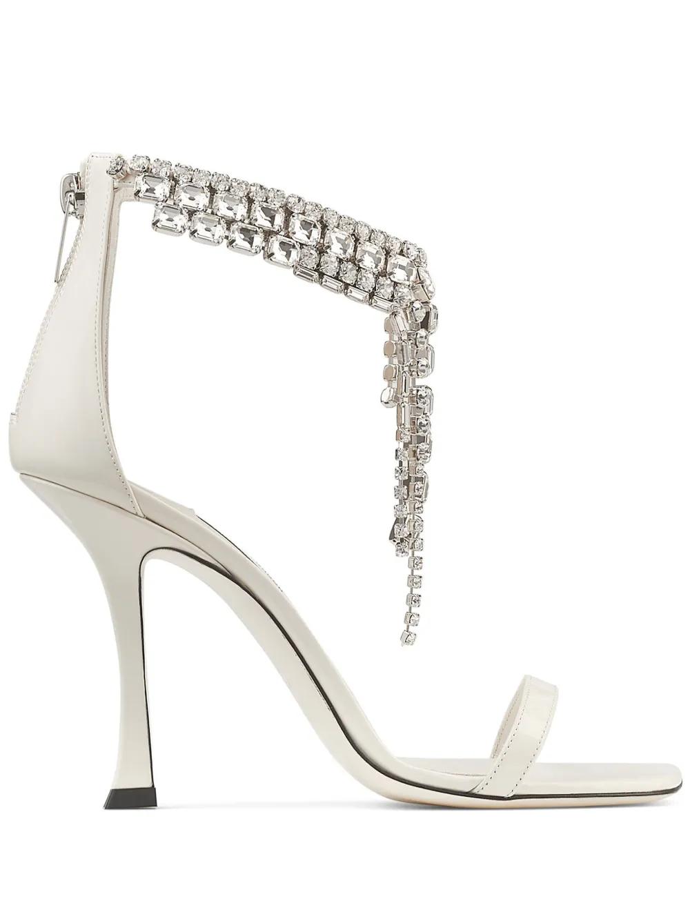 white rear zip fastening crystal embellishment square open toe high sculpted heel