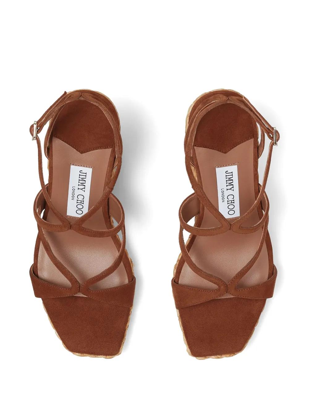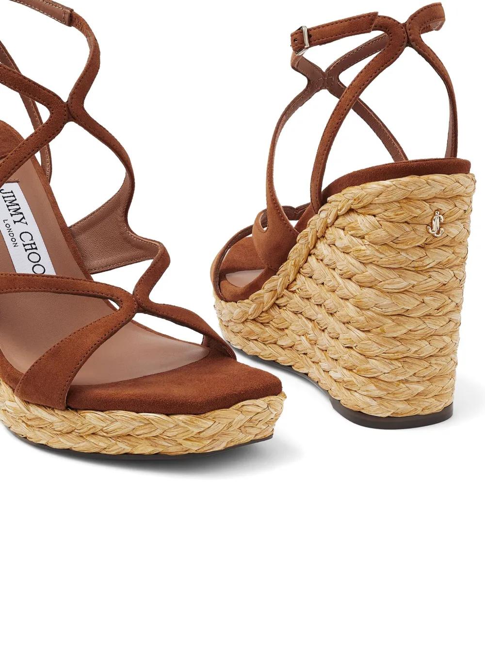 Jimmy Choo 110mm Ayla raffia wedged sandals - Brown