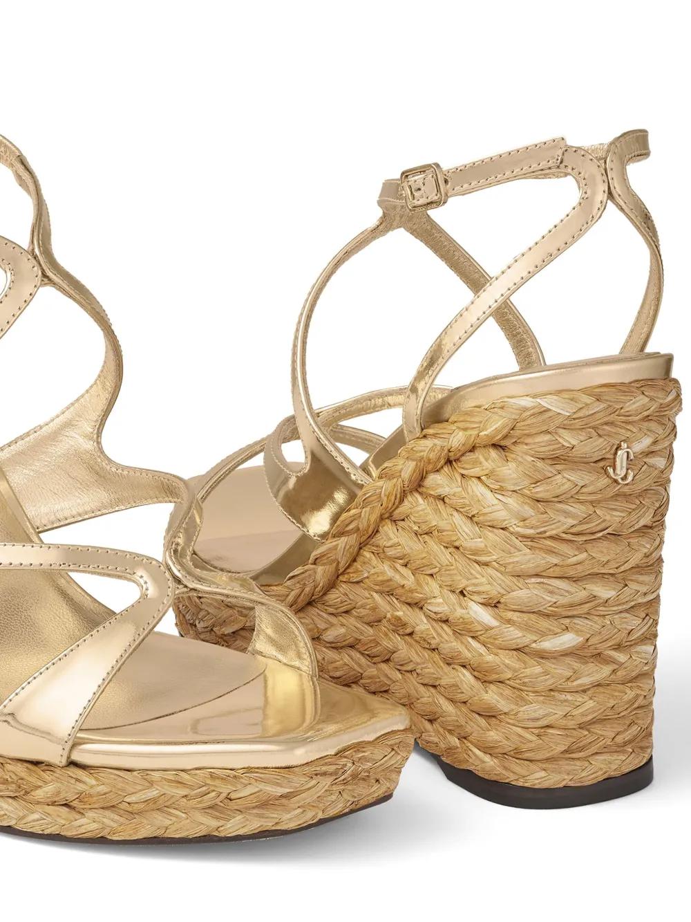 Jimmy Choo 110mm Ayla raffia wedged sandals - Gold