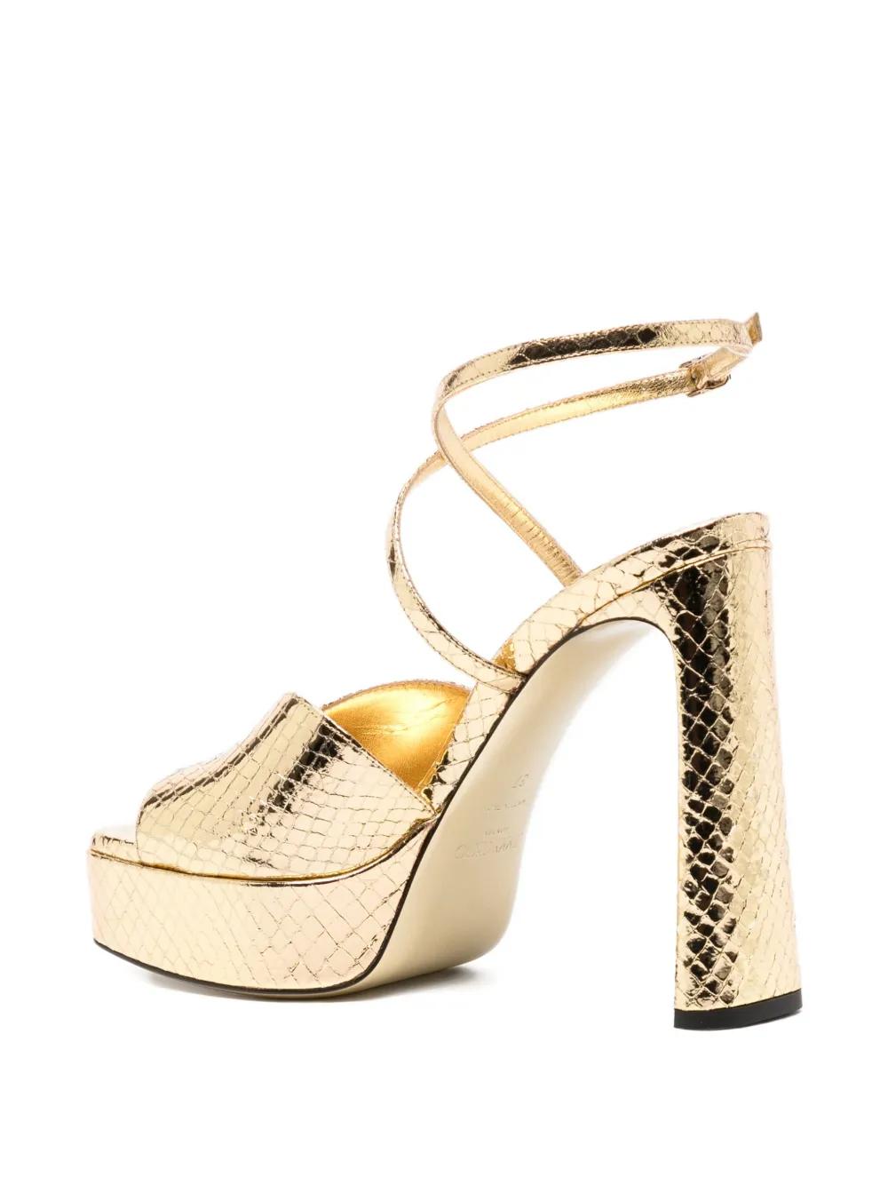 gold snakeskin effect ankle strap platform sole high heel open toe