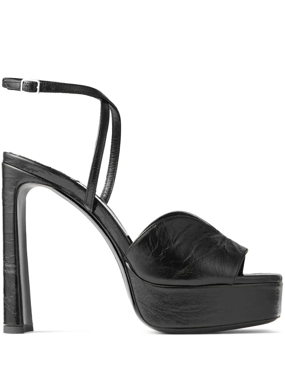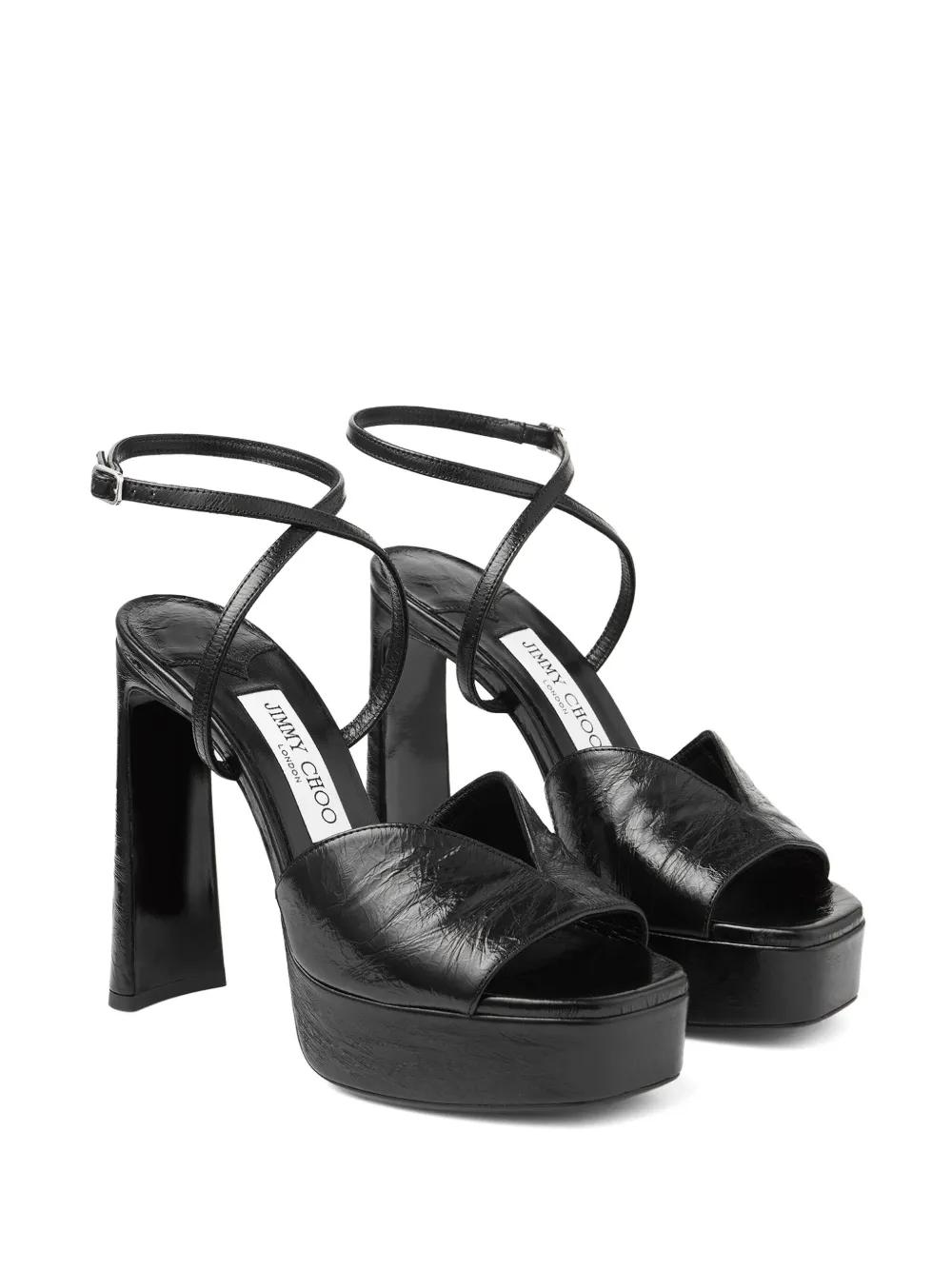 black buckle-fastening ankle strap branded footbed high block heel platform sole
