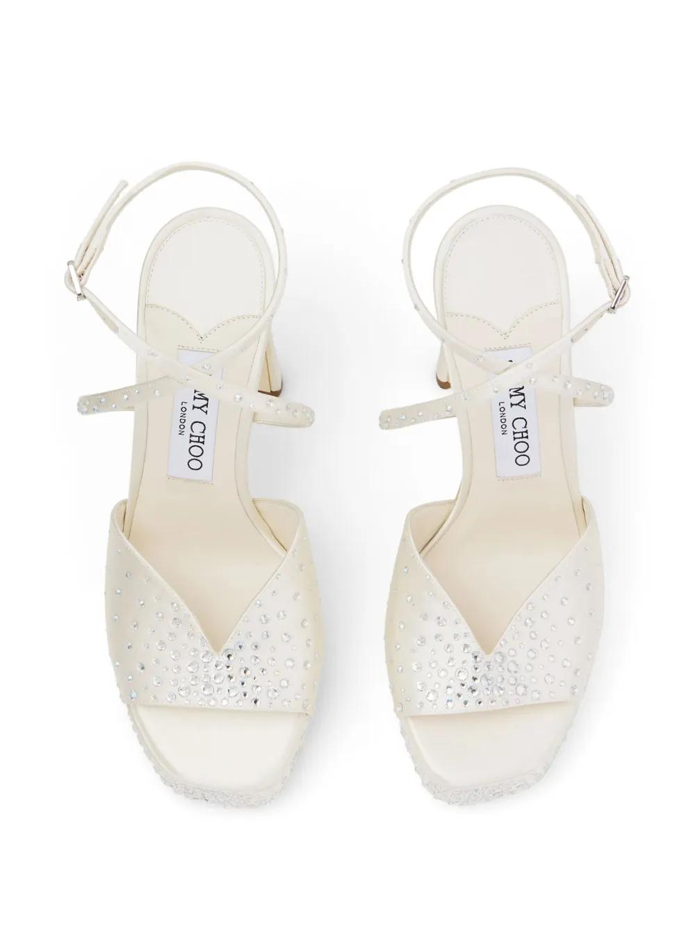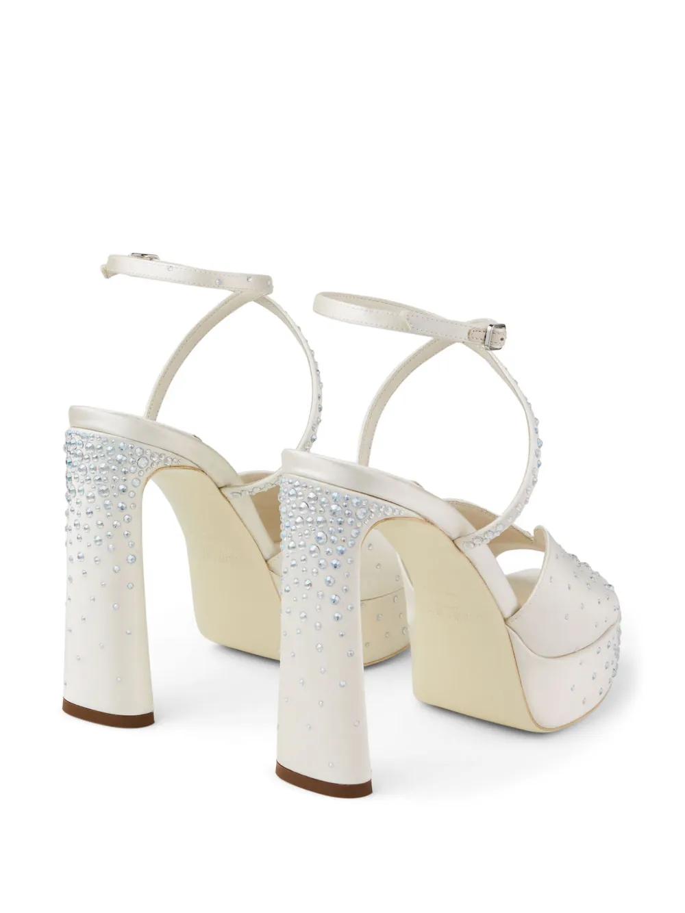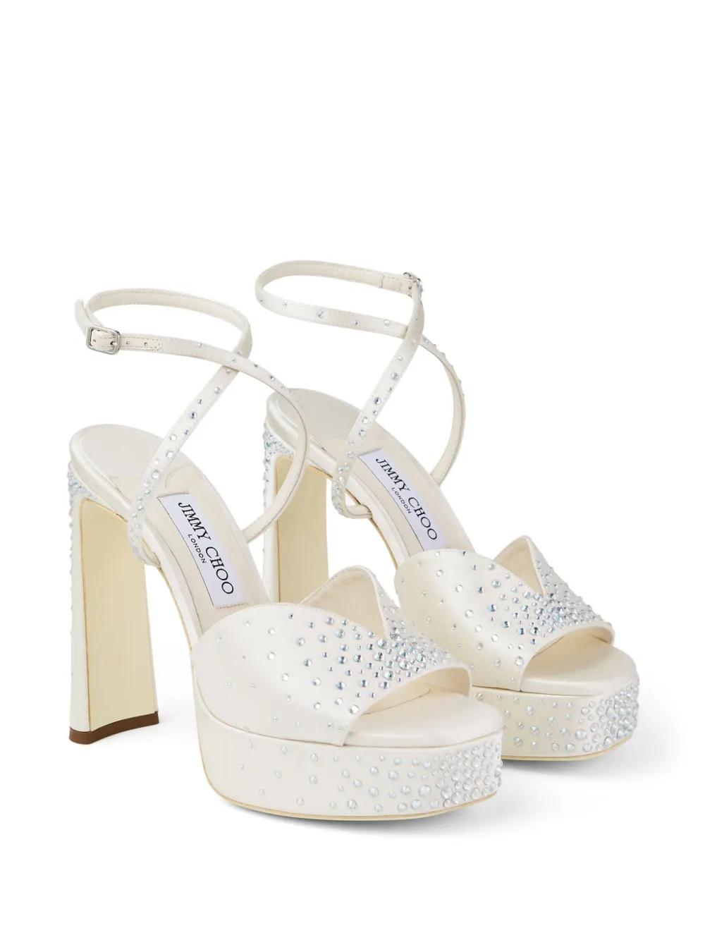 white buckle-fastening ankle strap crystal embellishment platform sole high sculpted heel