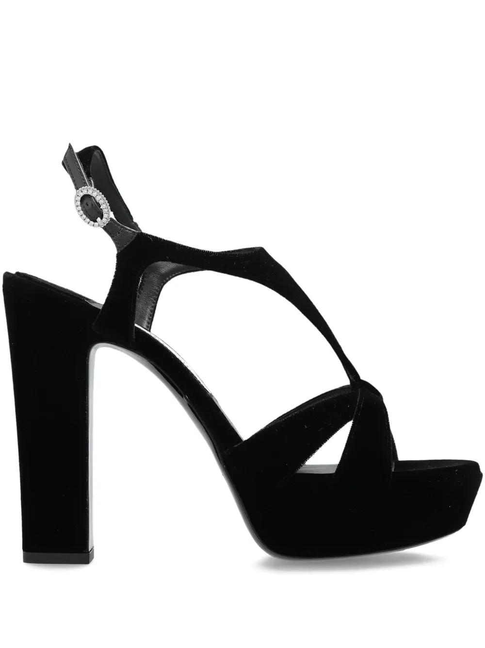 black t-strap platform sole 120mm heel buckle fastening open toe