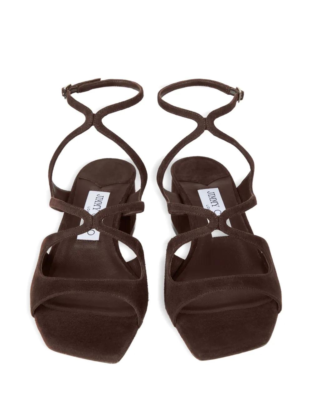 chocolate brown buckle-fastening ankle strap square open toe branded insole block heel