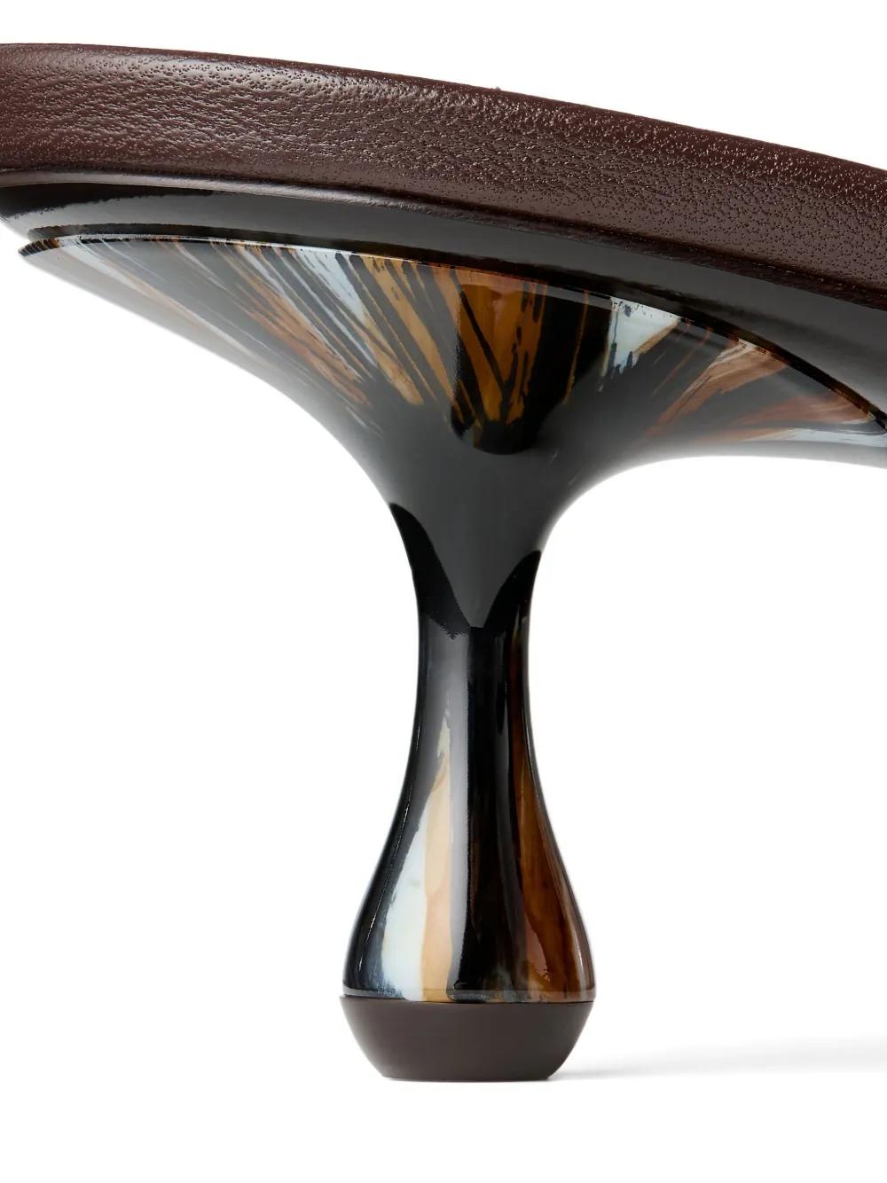 chocolate brown slip-on style square open toe branded footbed mid sculpted heel Wardrobe Icon