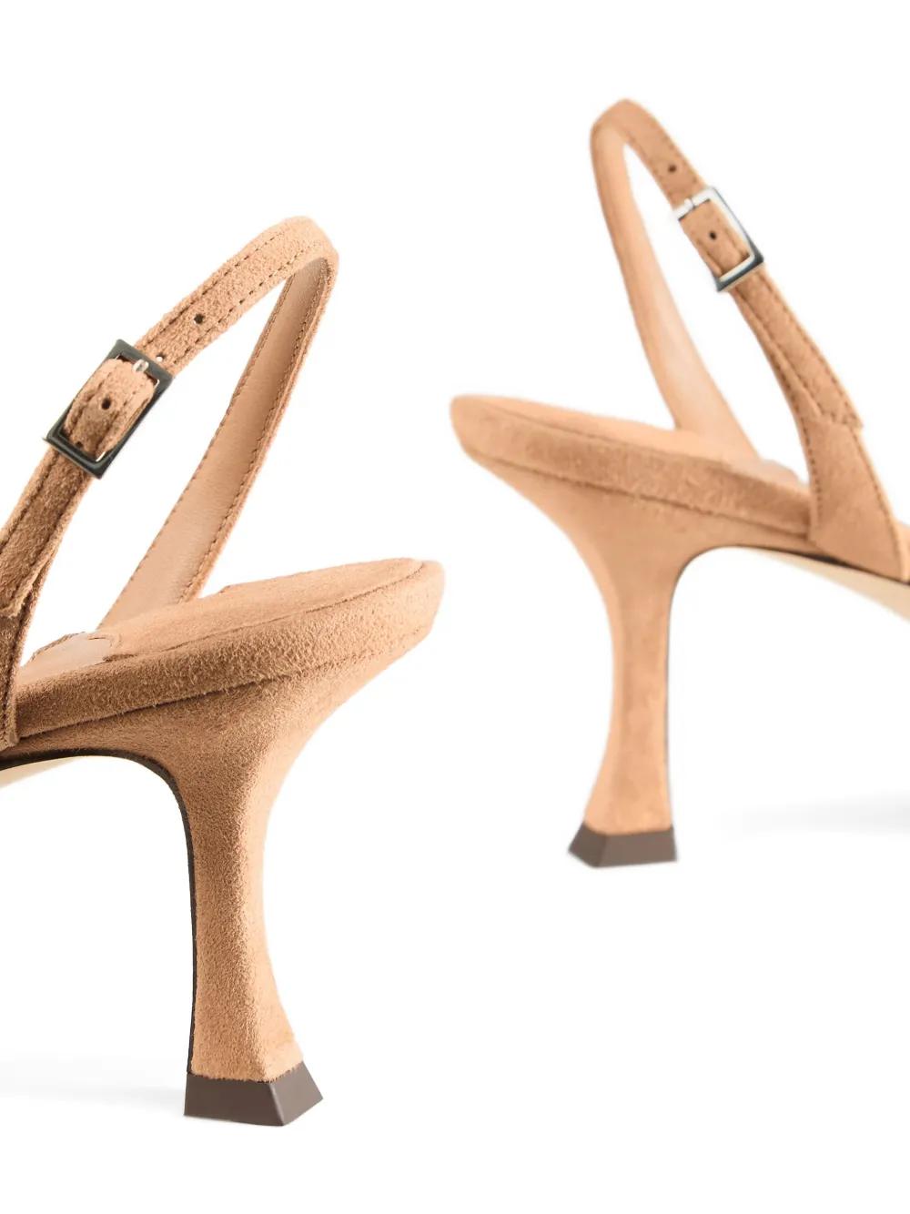 light brown side buckle fastening leather sole branded leather insole almond open toe Wardrobe Icon