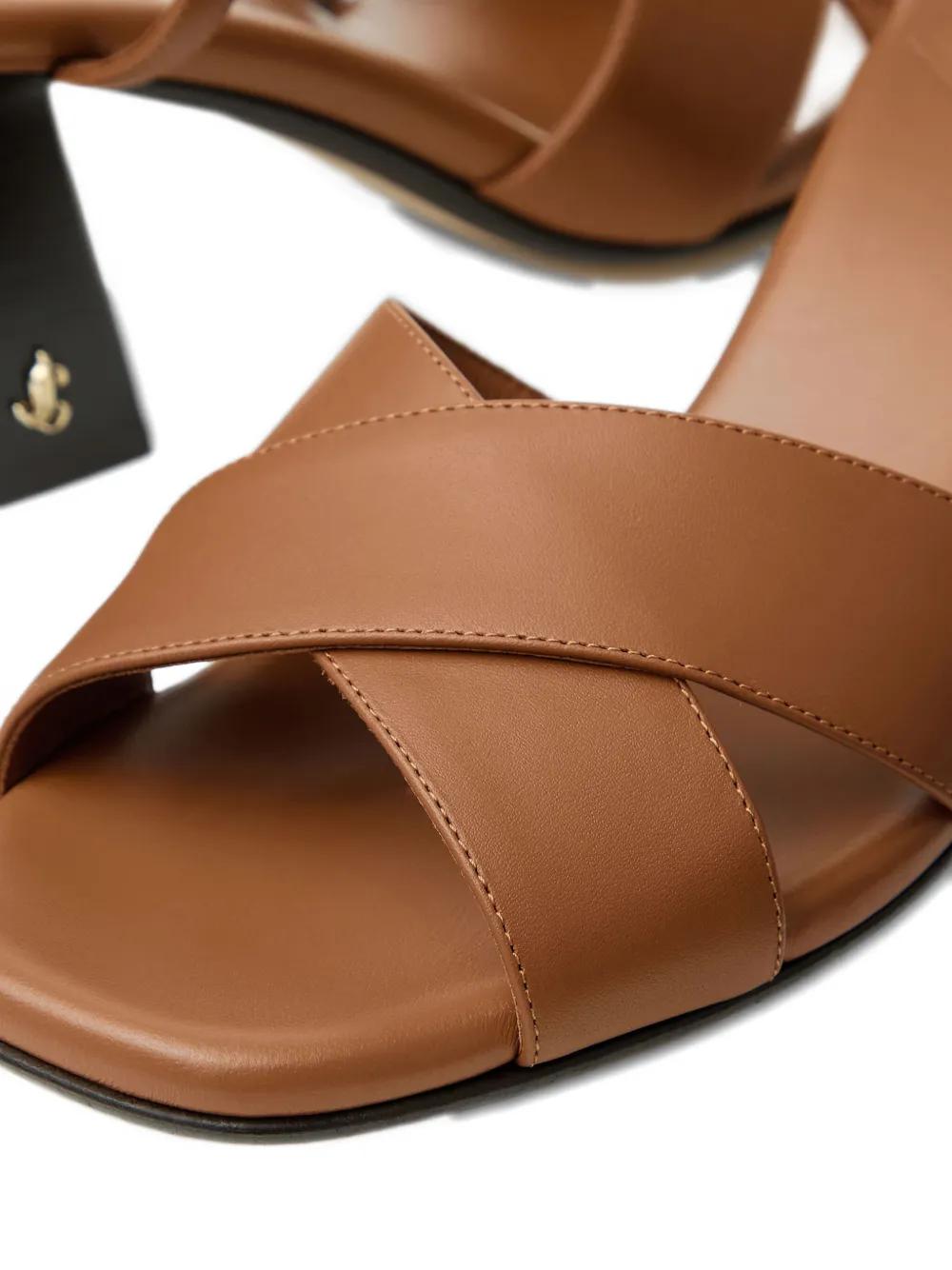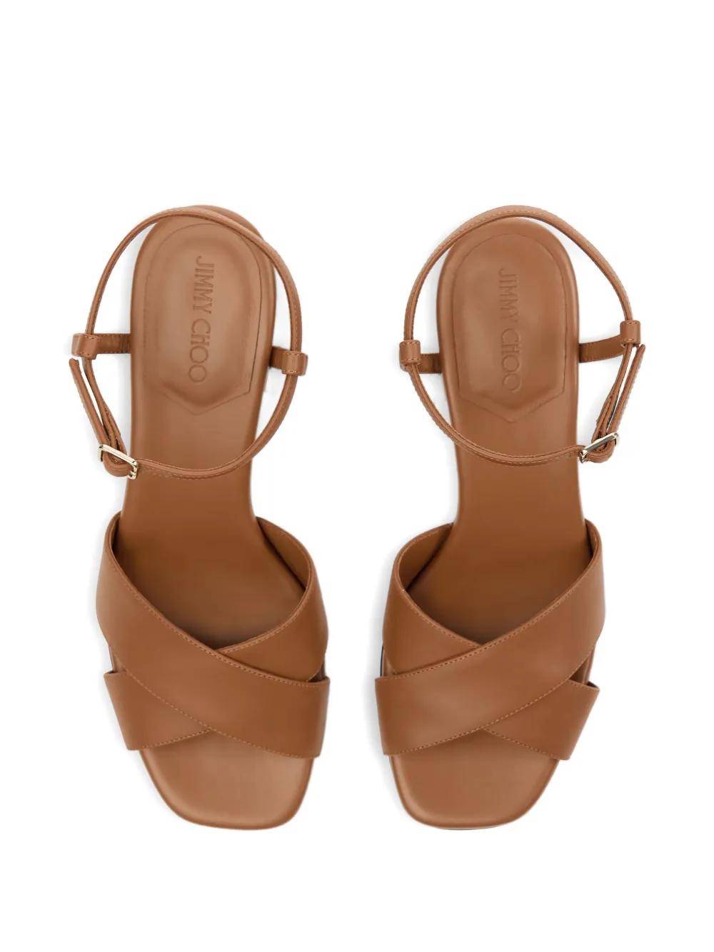 caramel brown buckle-fastening ankle strap branded footbed square open toe mid block heel