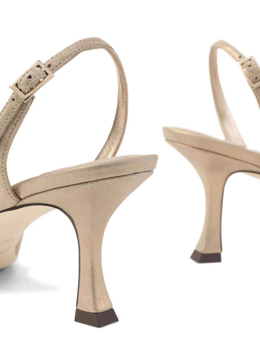 gold leather upper crossover straps sling-back design buckle fastening stiletto heel