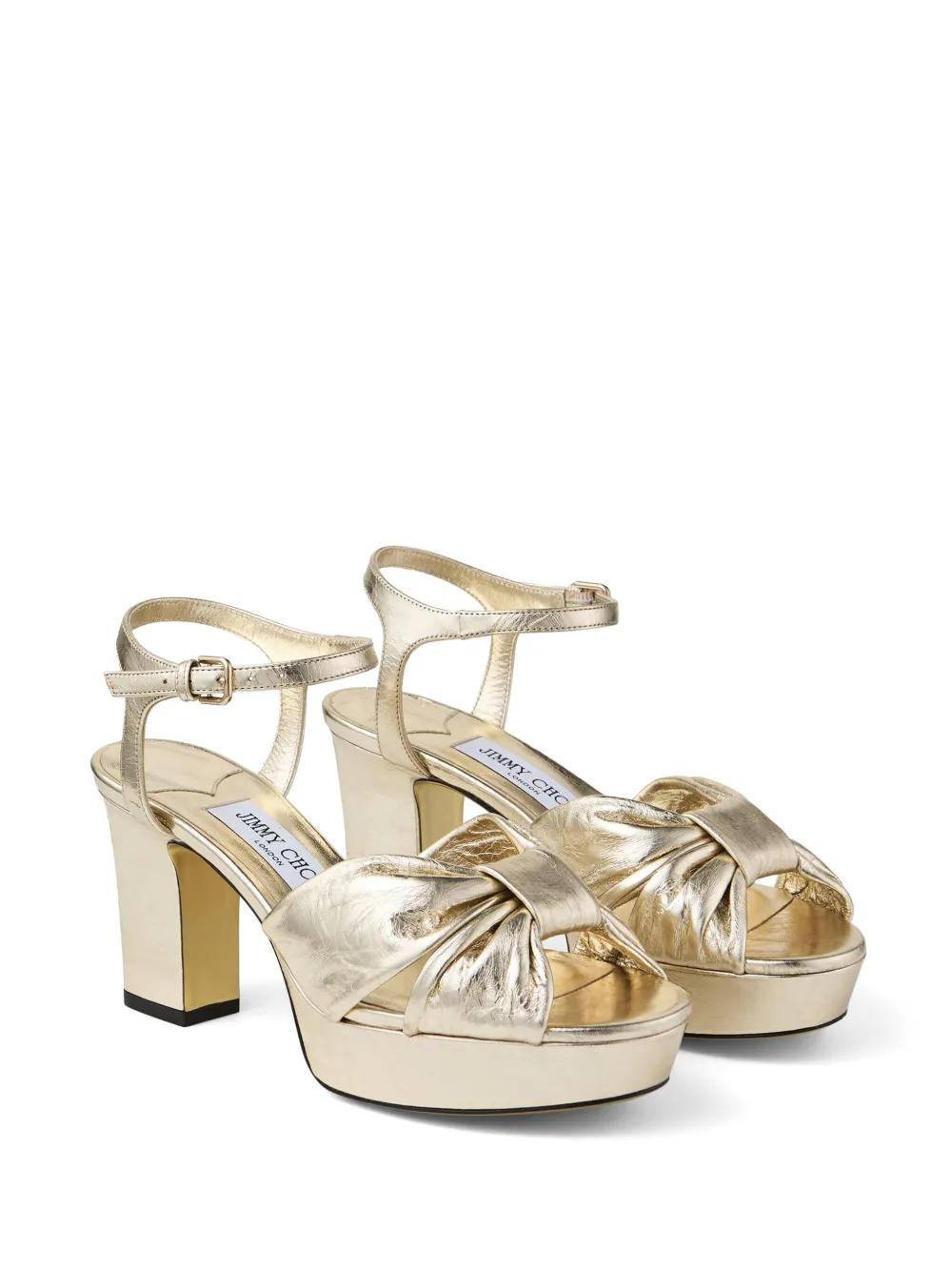 gold-tone buckle-fastening ankle strap branded footbed high block heel platform sole Wardrobe Icon