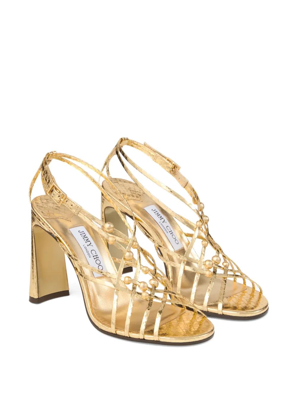 Jimmy Choo 90mm leather heeled sandals - Gold