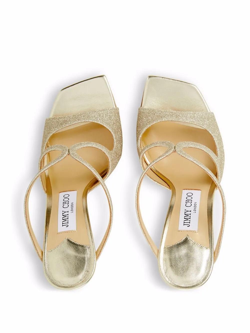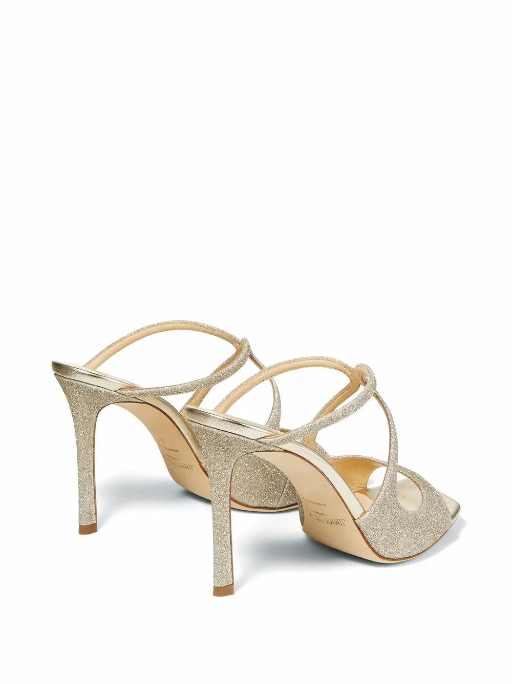 platinum ice leather open toe glitter detailing crossover strap at the toe high stiletto heel