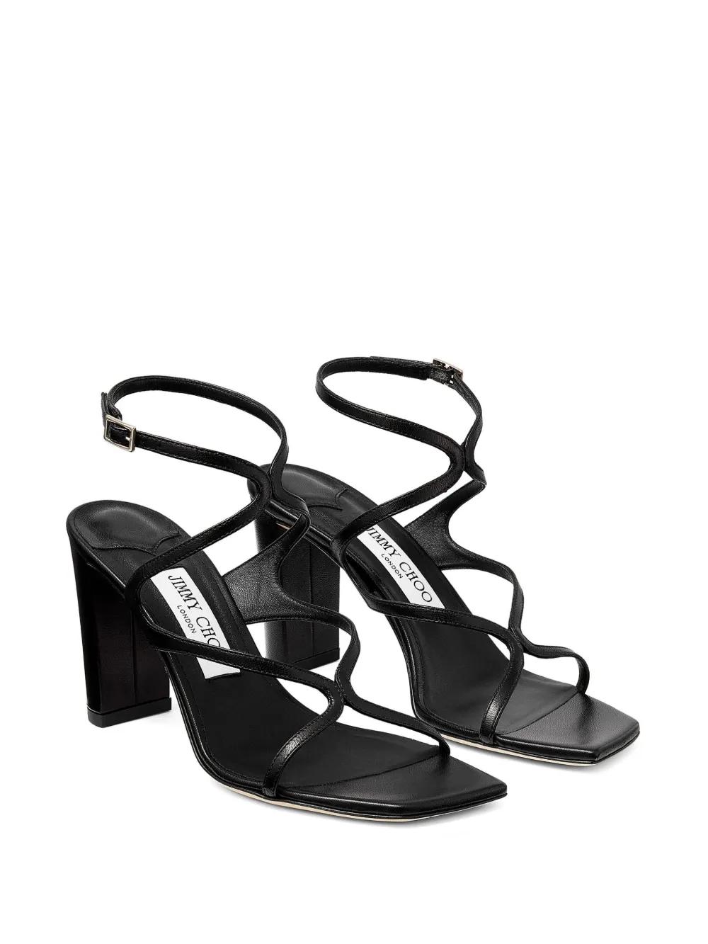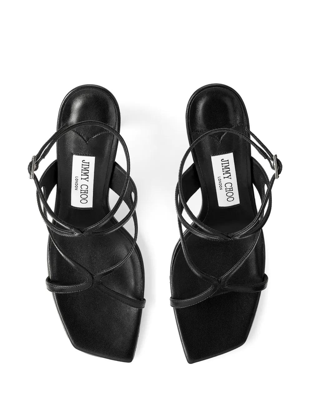 black lambskin thin straps buckle-strap fastening square open toe branded leather insole 85mm high block heel Wardrobe Icon