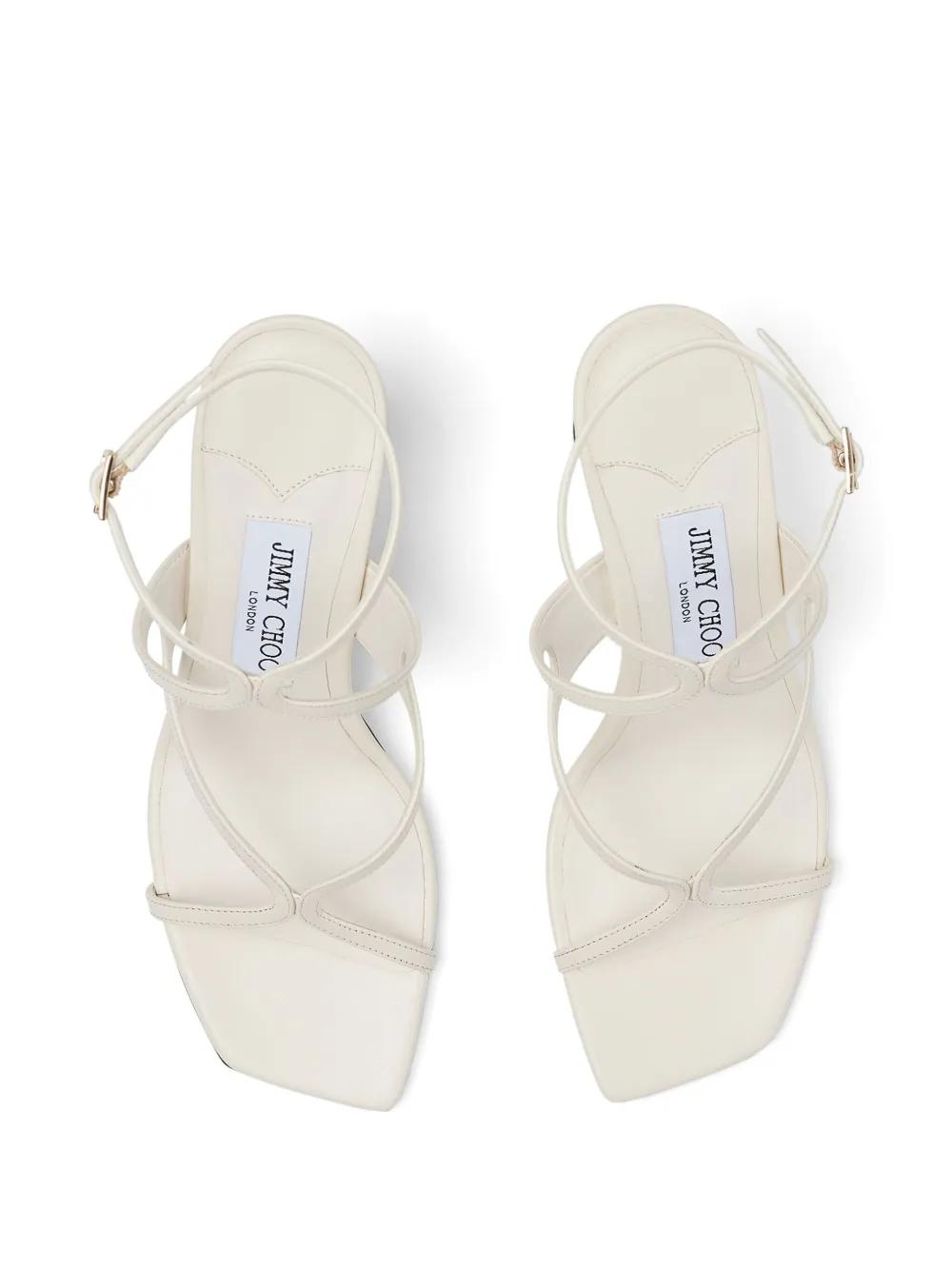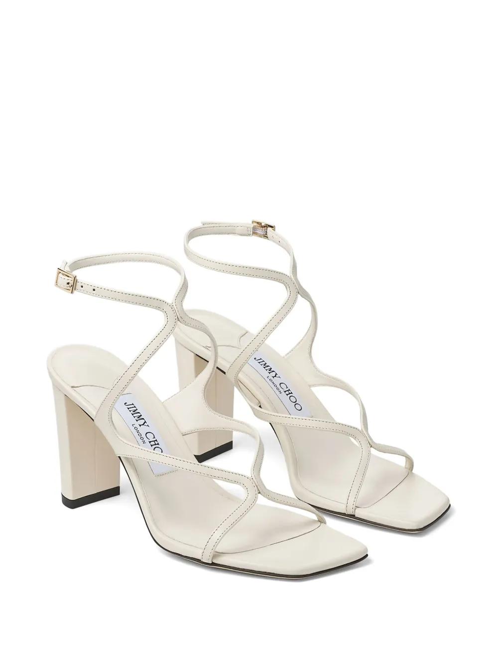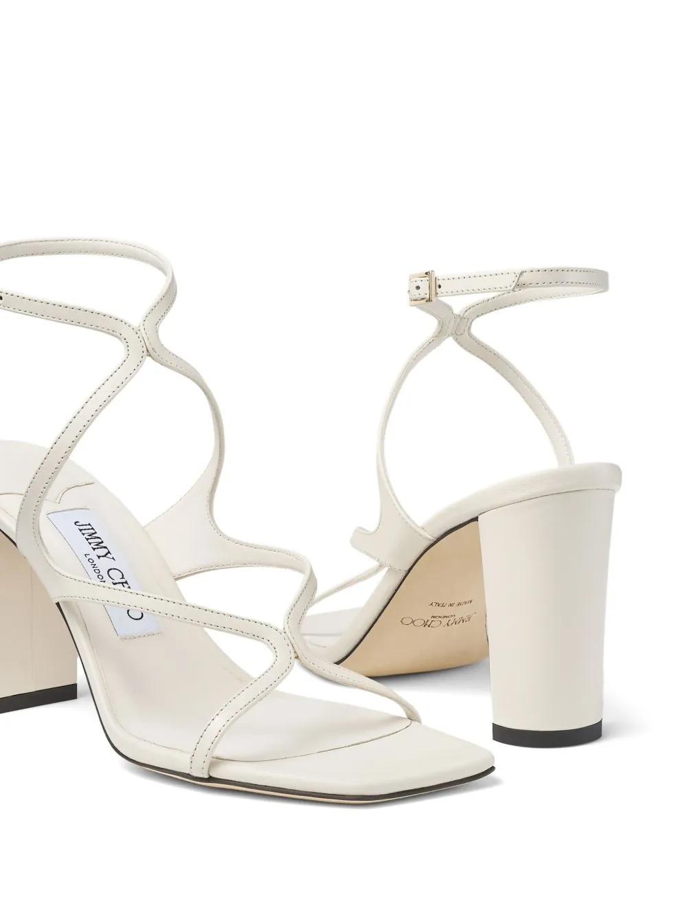 white leather thin straps buckle-strap fastening square open toe branded leather insole 85mm high block heel