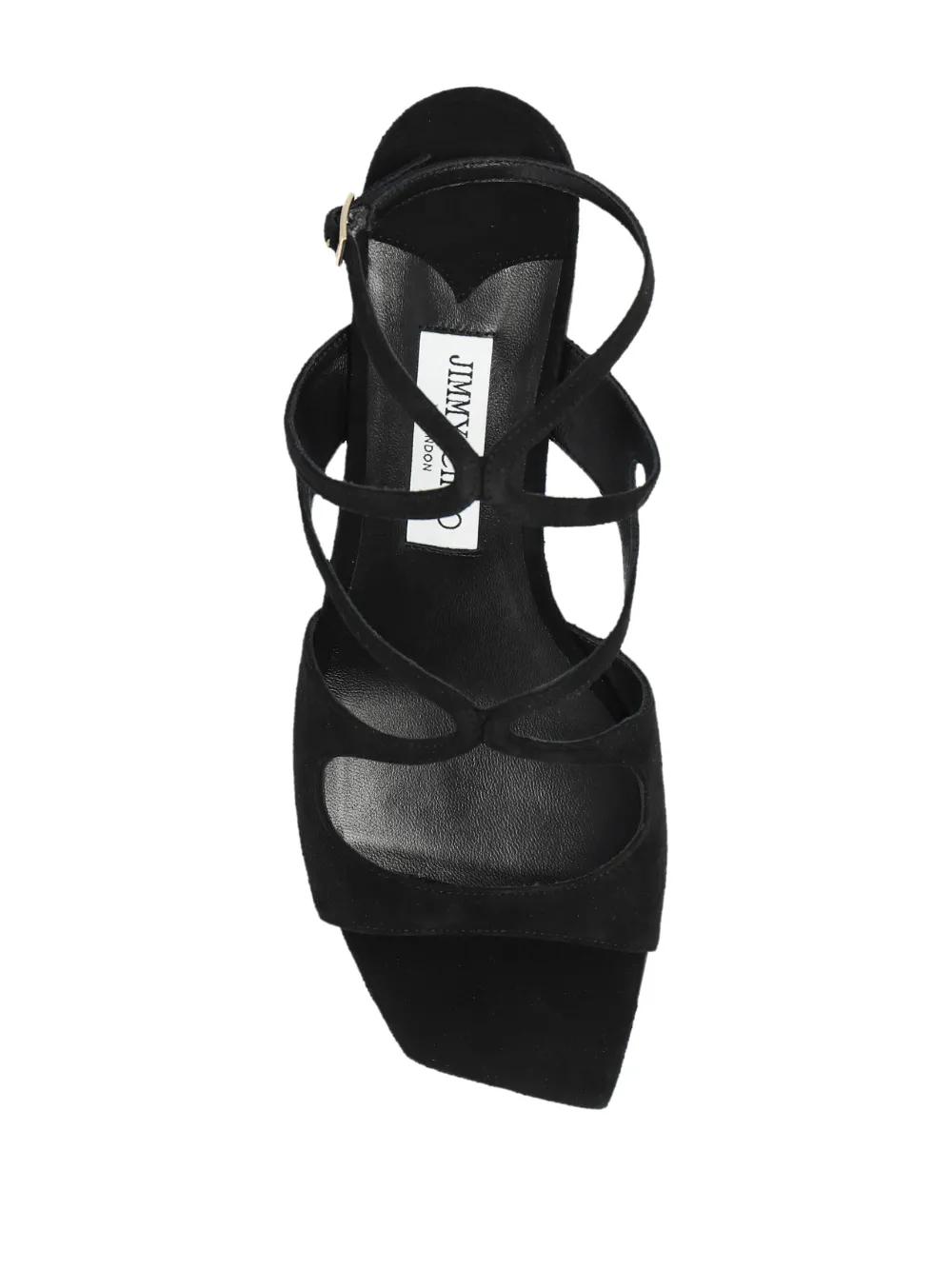 black suede caged design square open toe buckle-fastening ankle strap branded heel counter low block heel