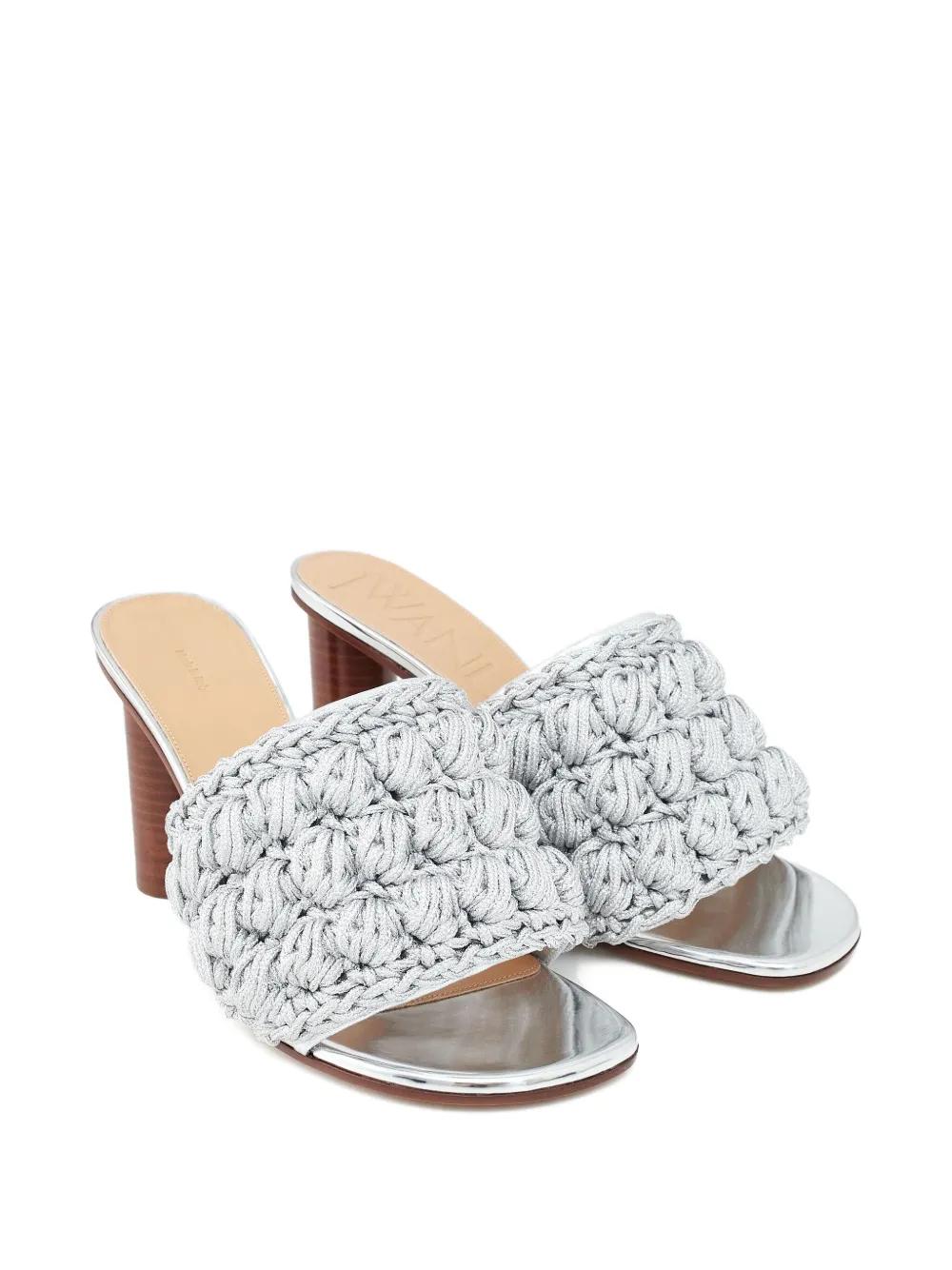 silver-tone calf leather mirrored finish round open toe single toe strap buckle-fastening ankle strap branded leather insole flat leather sole