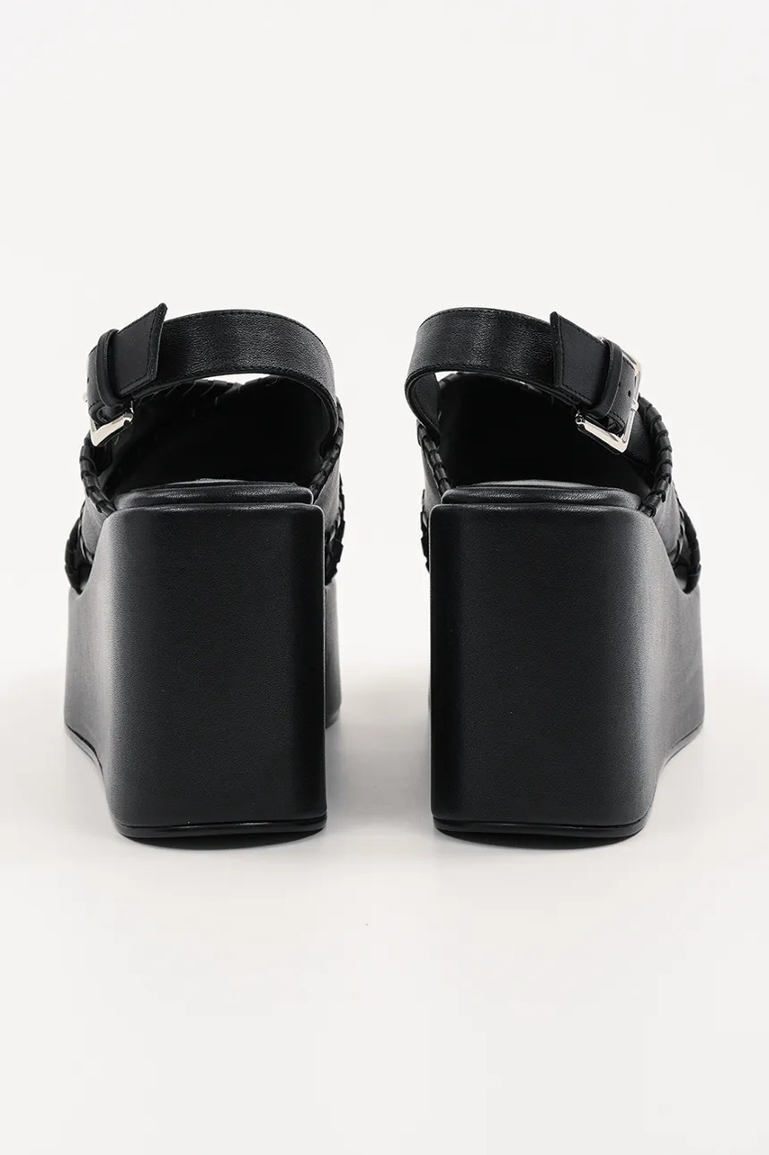 - Gładki materiał. - Zapięcie na klamrę ze szpilką, które umożliwia indywidualne dopasowanie. - Komfortowe wnętrze. - Model na koturnie. - Ozdobne detale.