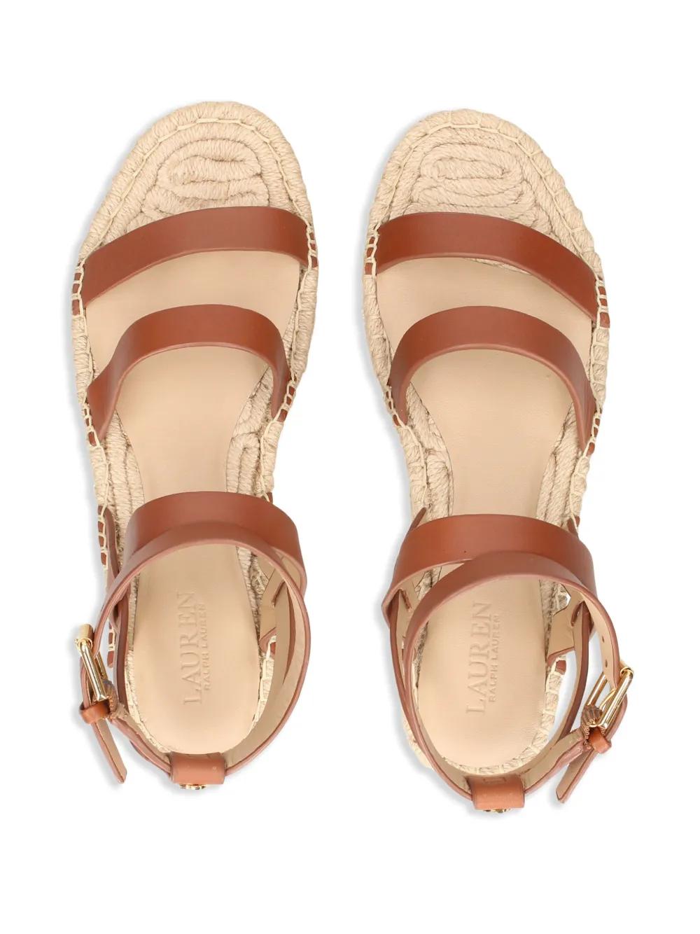 caramel brown buckle-fastening ankle strap crossover strap at the toe jute sole platform sole