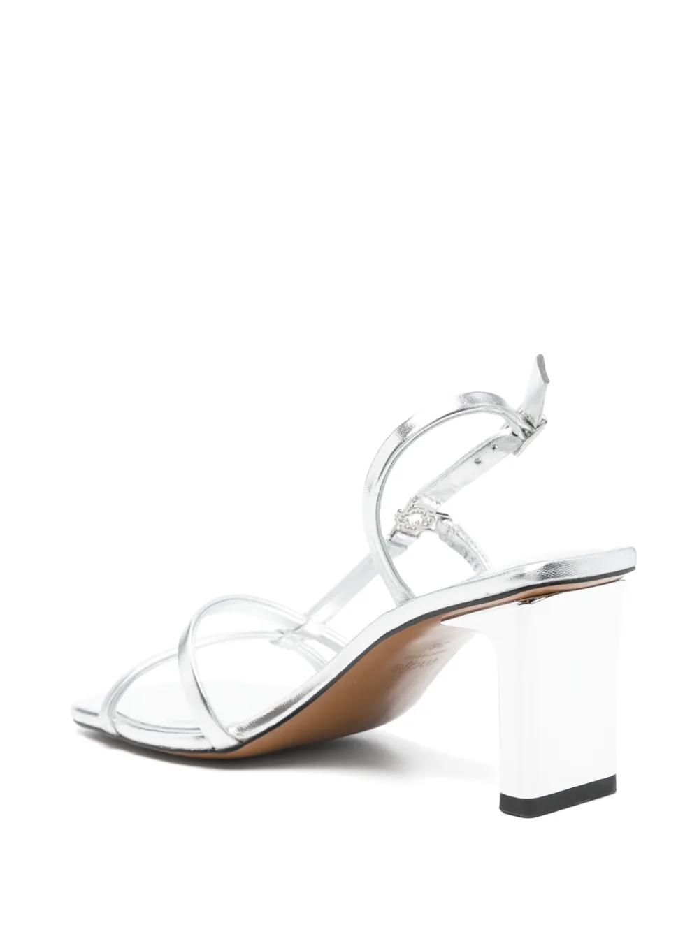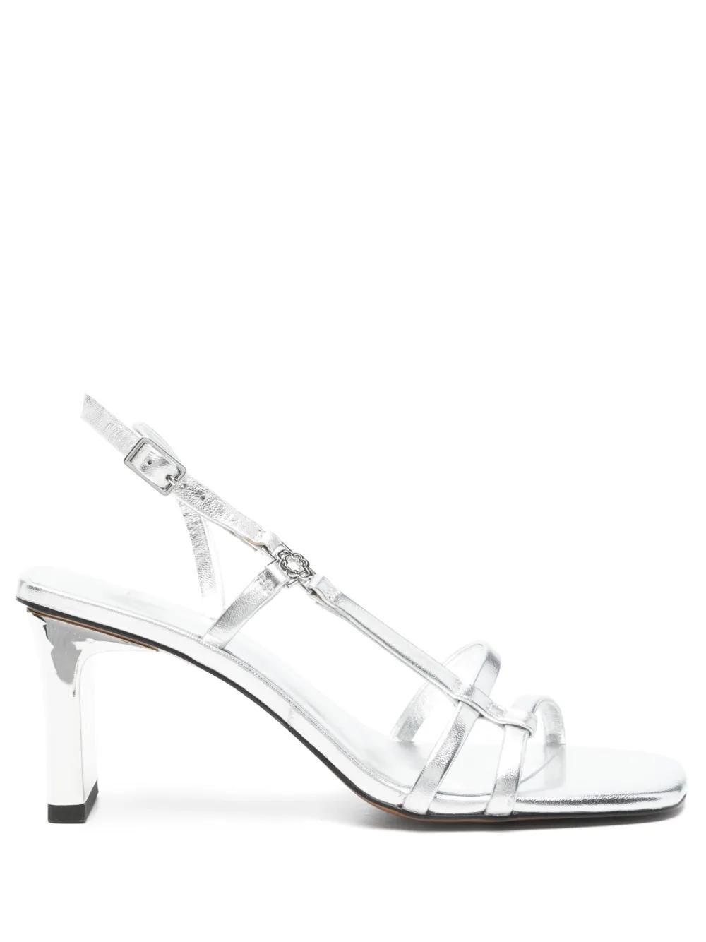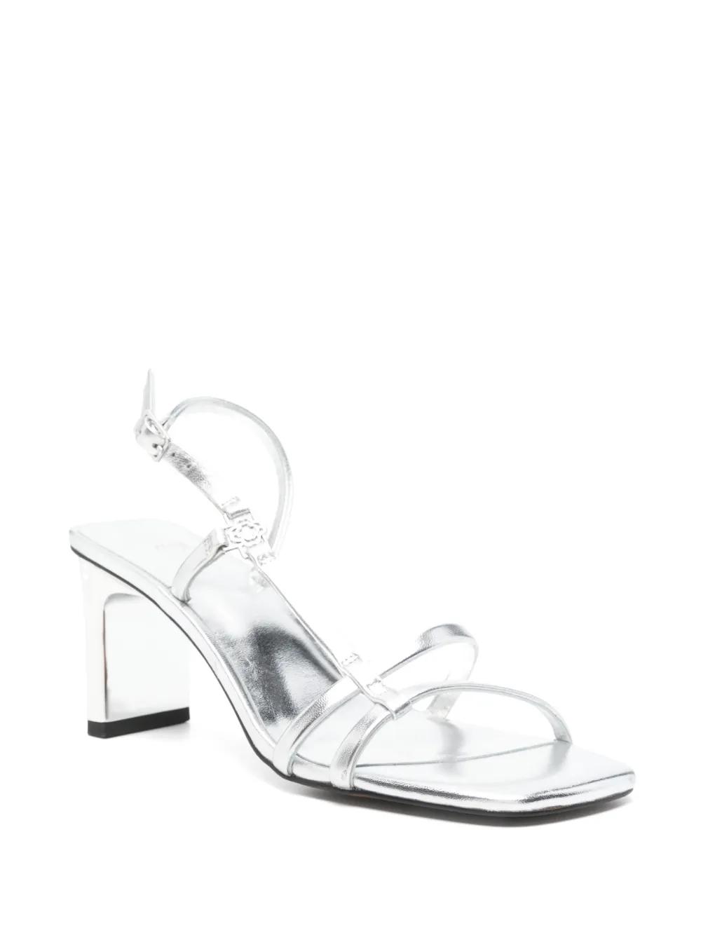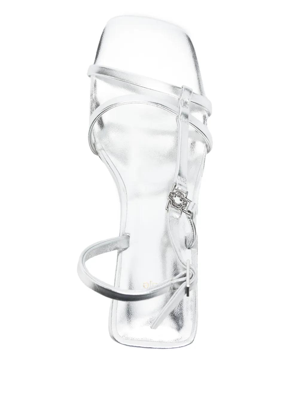 silver-tone buckle-fastening ankle strap square open toe mid heel branded leather insole