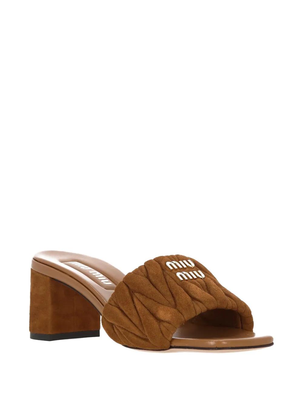 Miu Miu 55mm matelassé-motif leather sandals - Brown