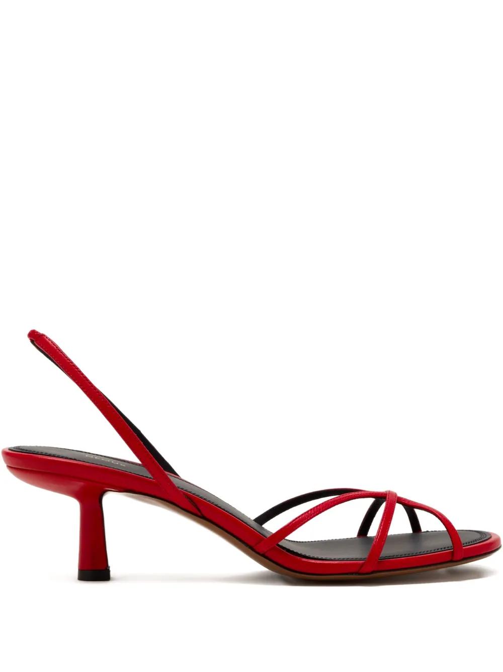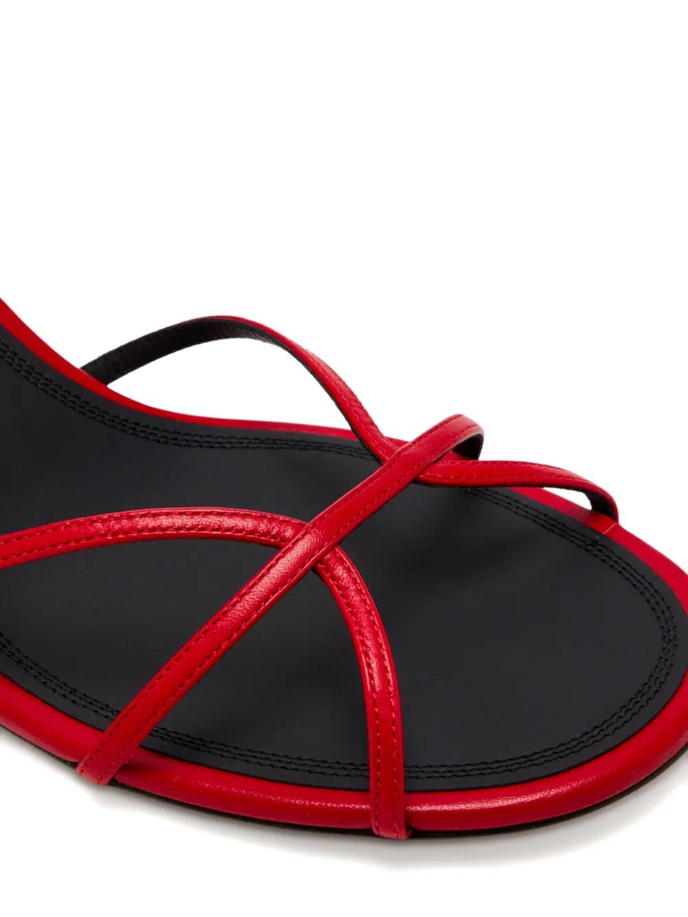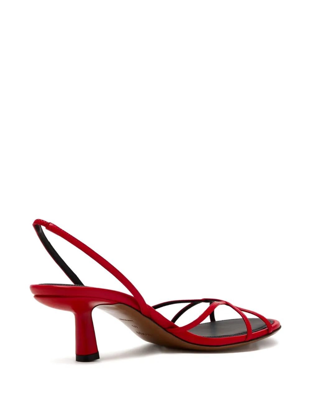 black sheepskin open toe branded insole buckle-fastening ankle strap high heel strappy design