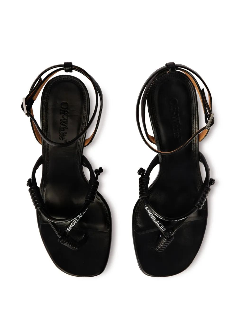 black buckle-fastening ankle strap thong strap mid heel leather outsole