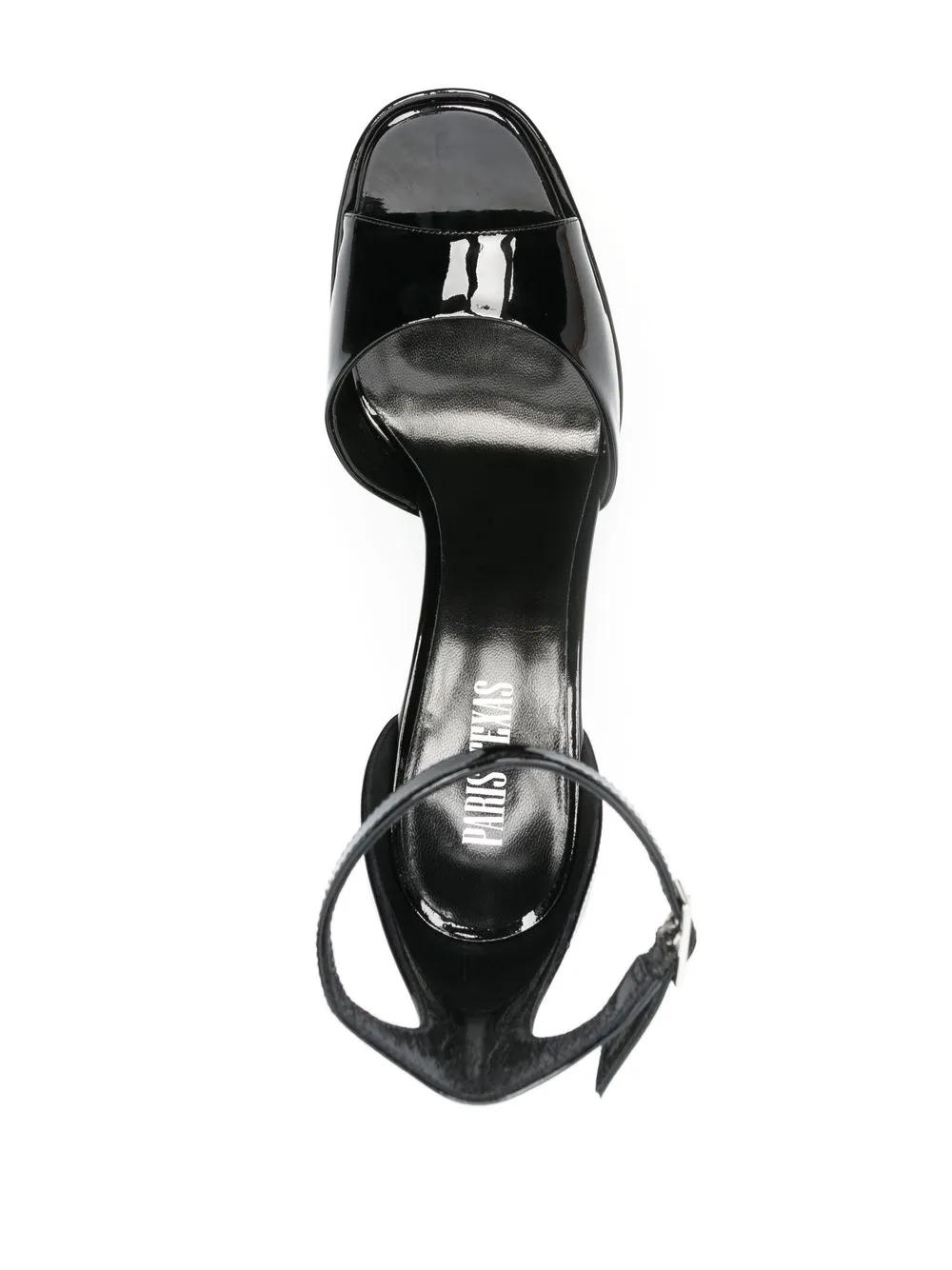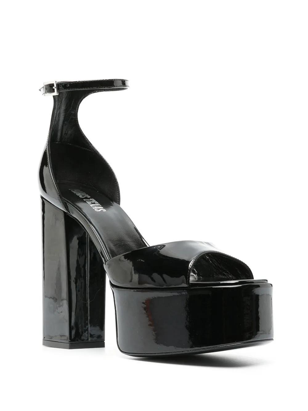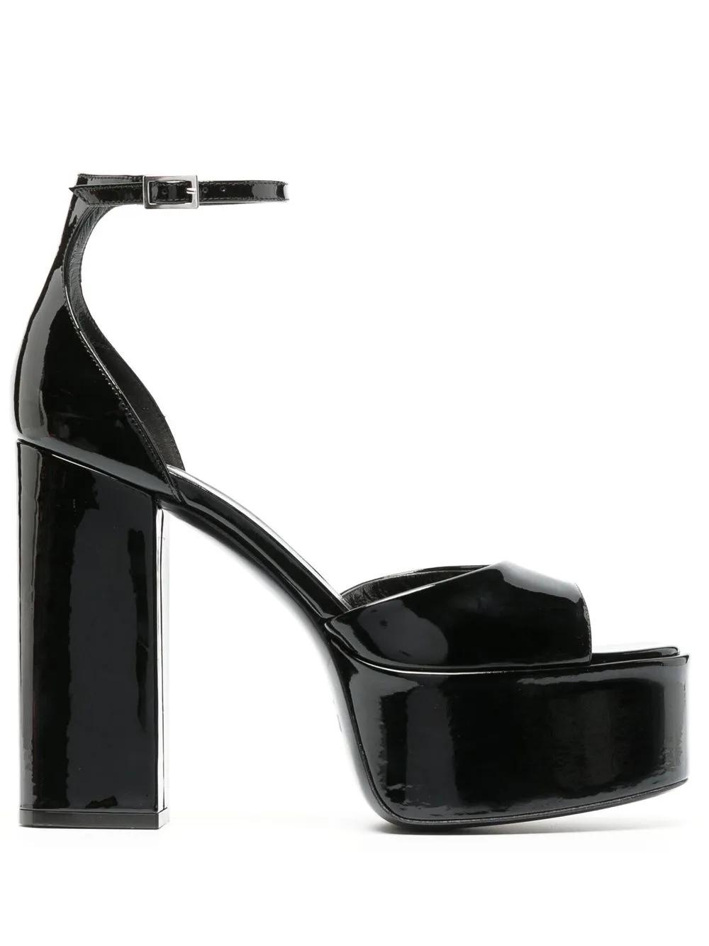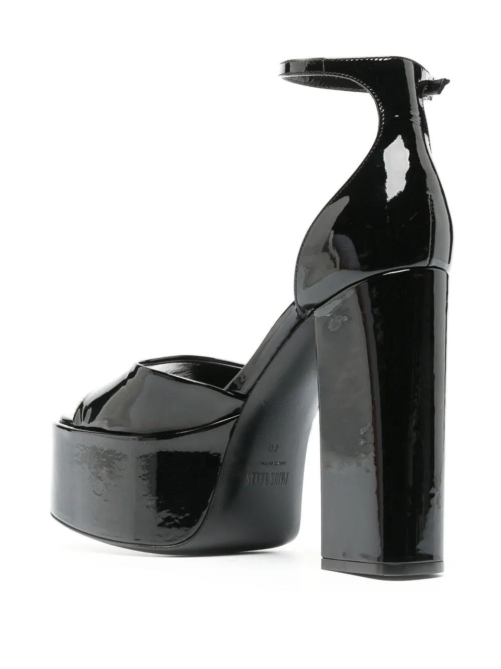 calf leather black branded insole open toe buckle-fastening ankle strap platform sole high block heel