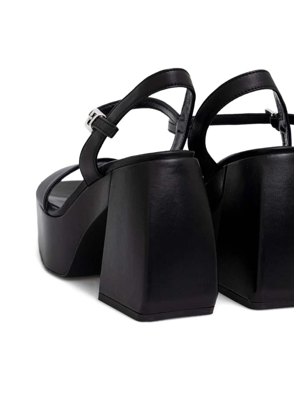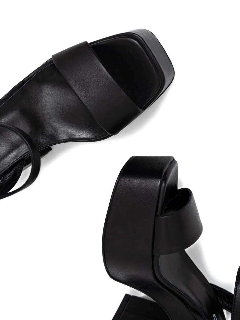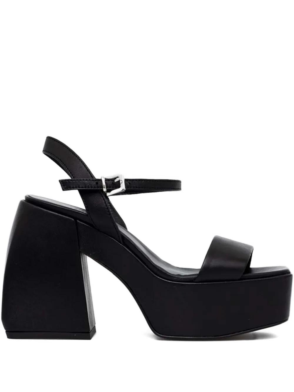 black platform sole block heel buckle fastening open toe ankle strap