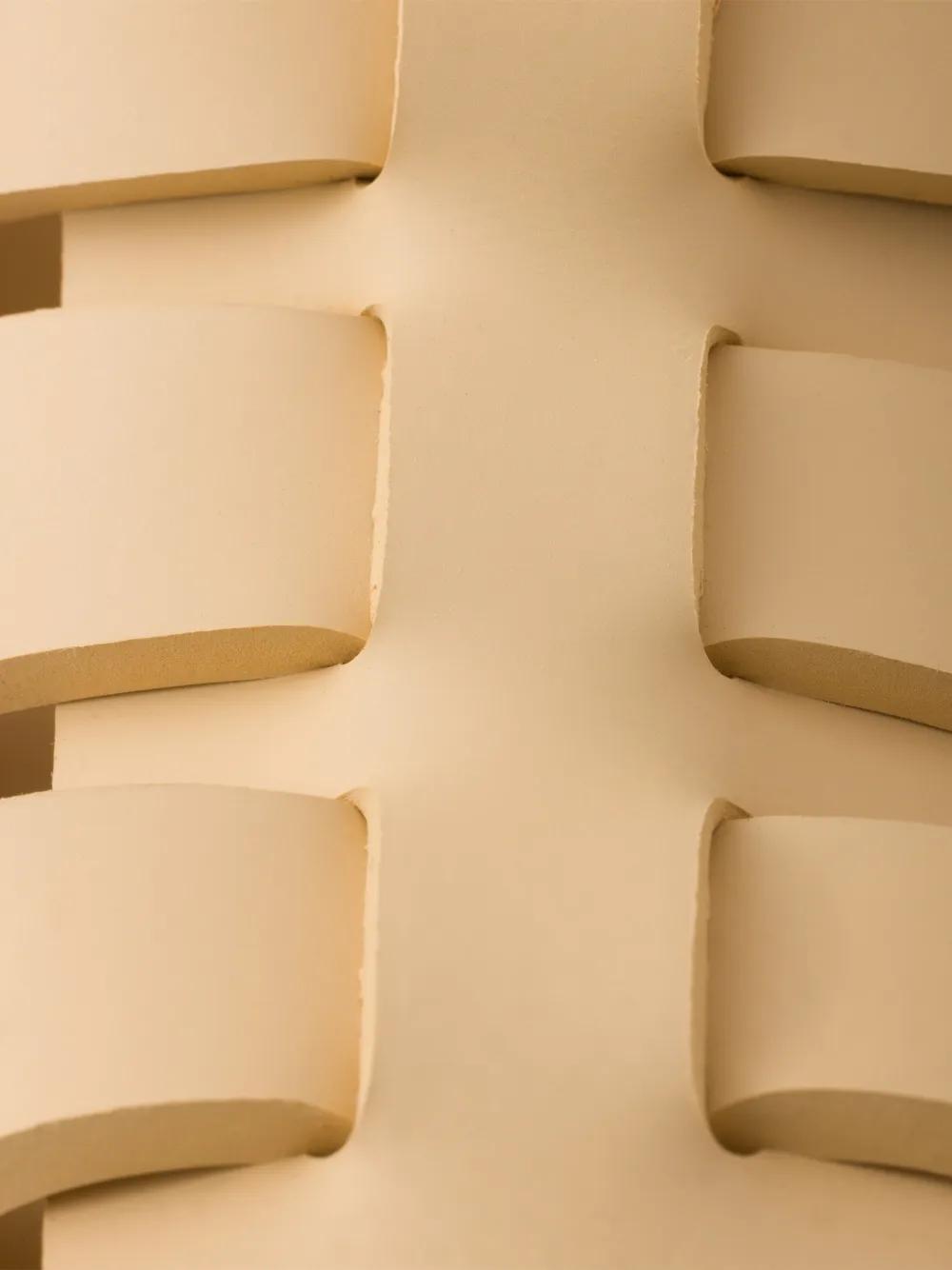 neutral metal buckle enameled metal triangle logo rubber sole lug tread