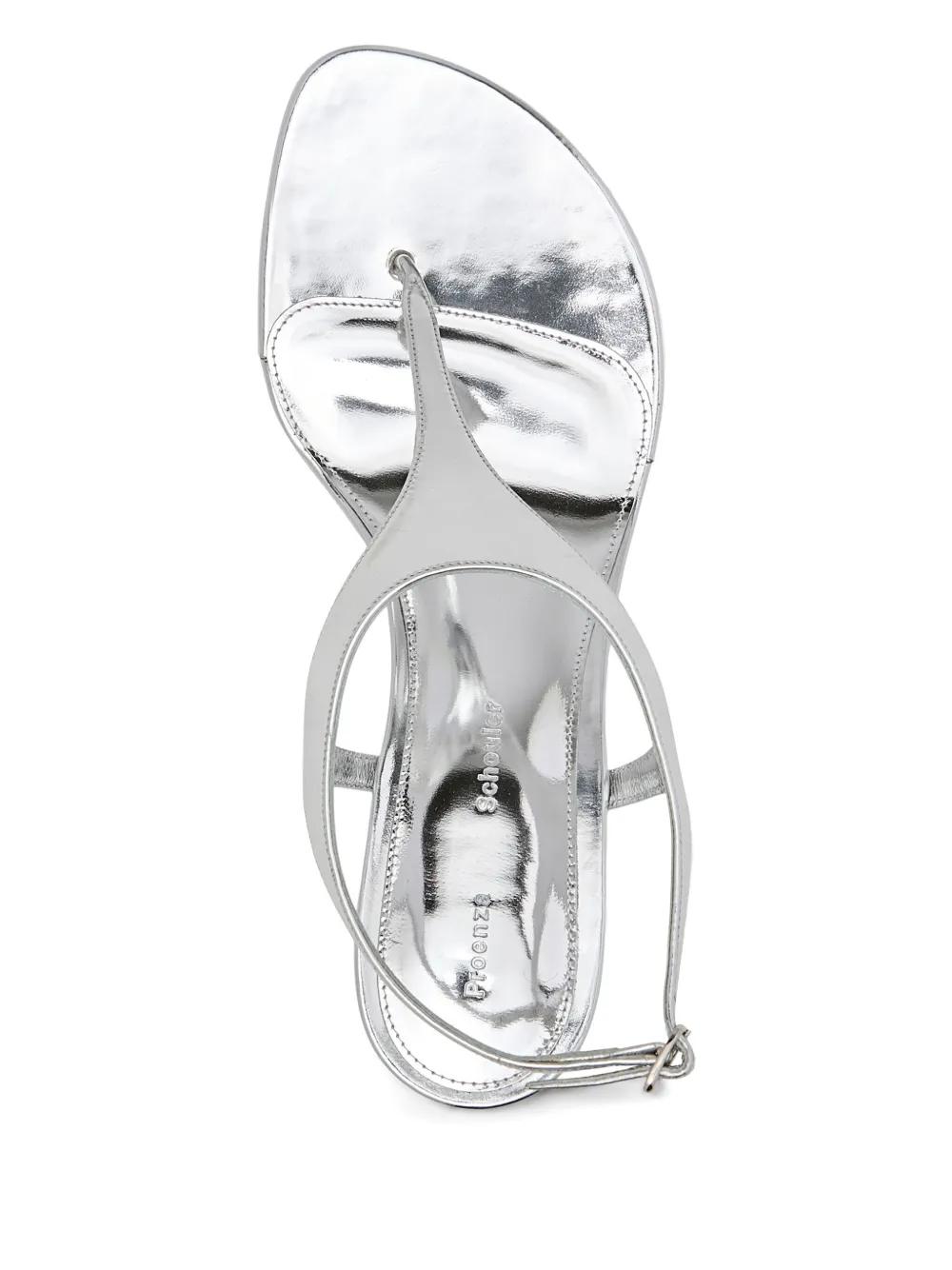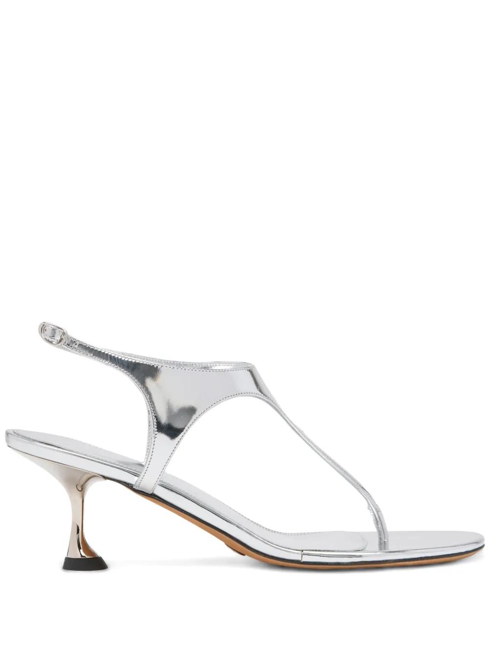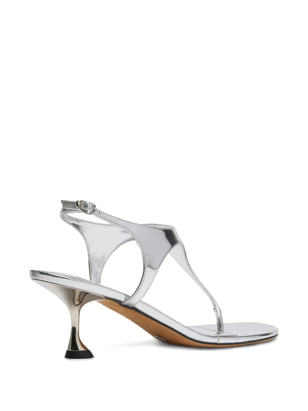 silver-tone buckle-fastening slingback strap mid heel thong strap metallic finish