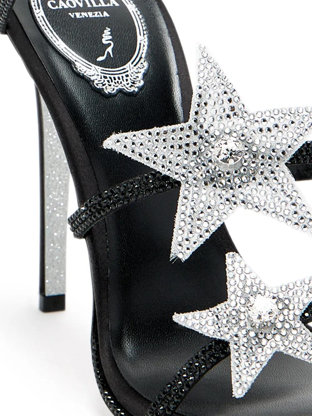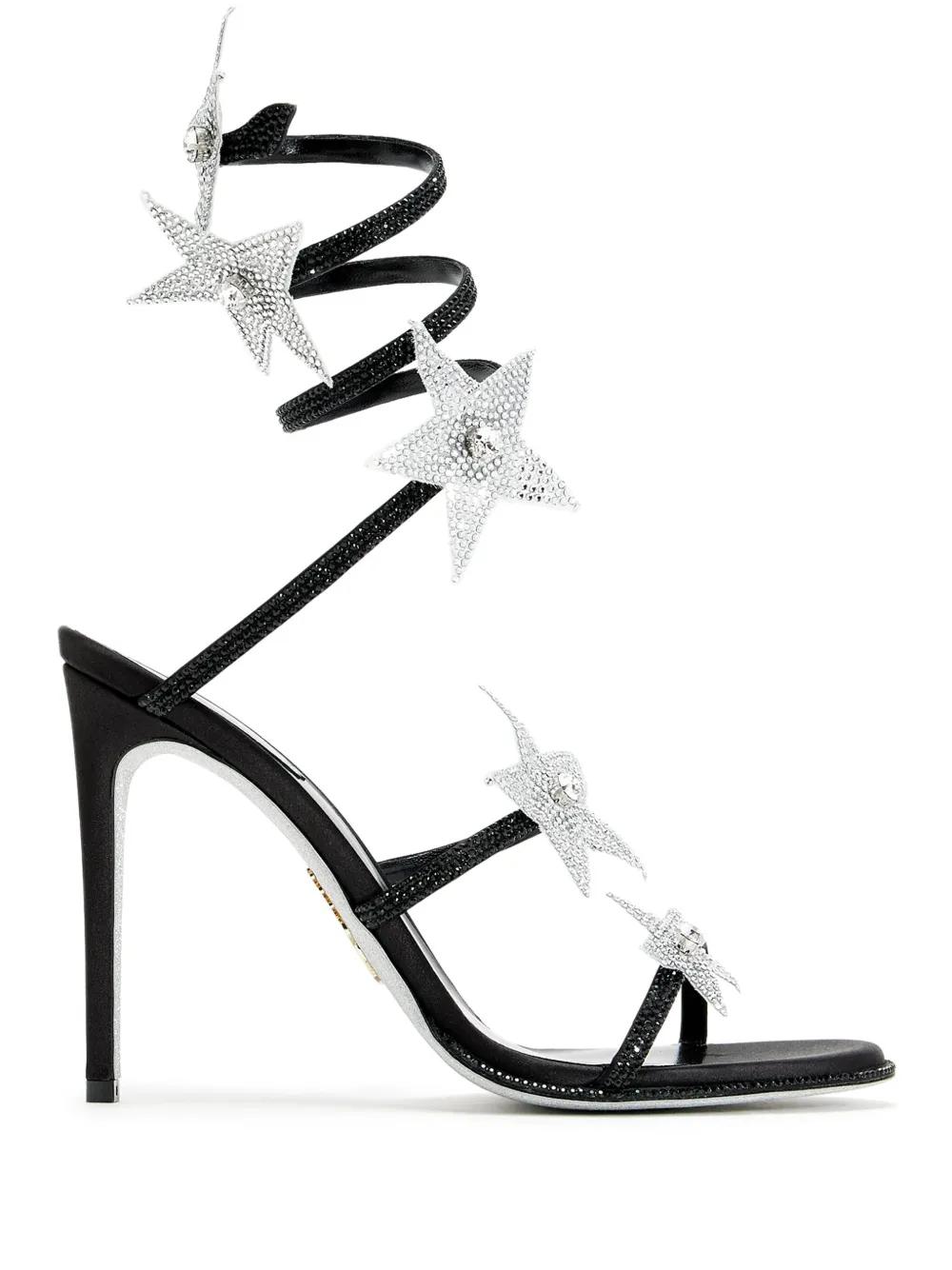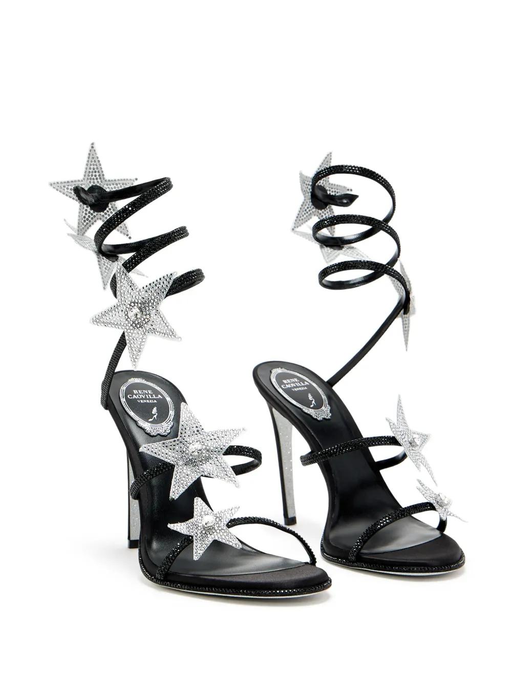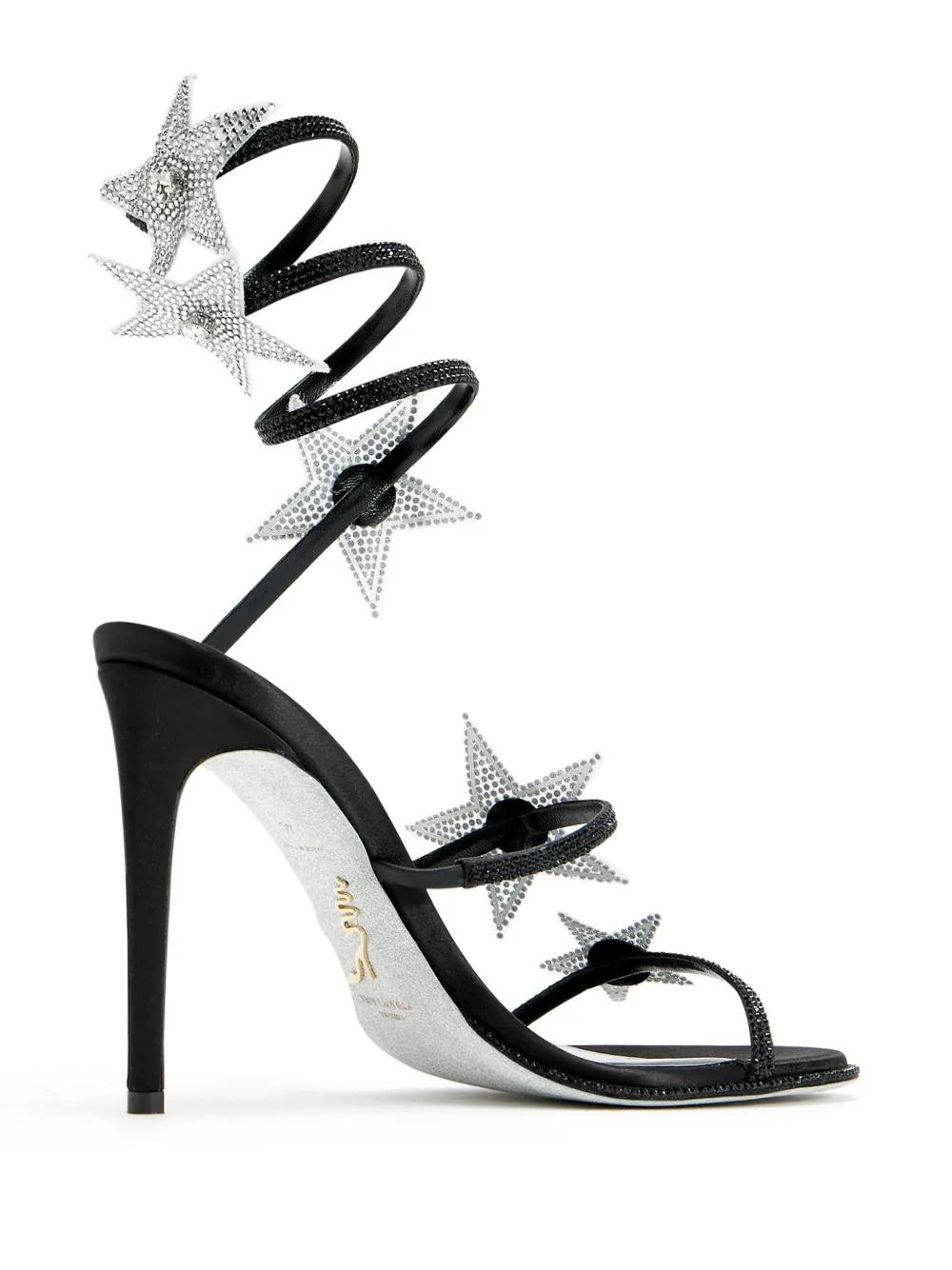 black crystal-embellished ankle strap 105mm stiletto heel almond open toe star patch detail