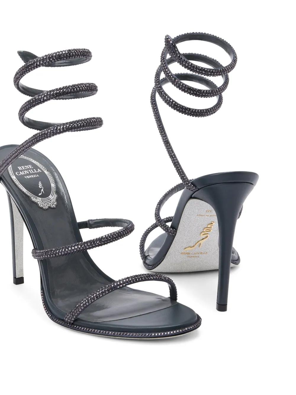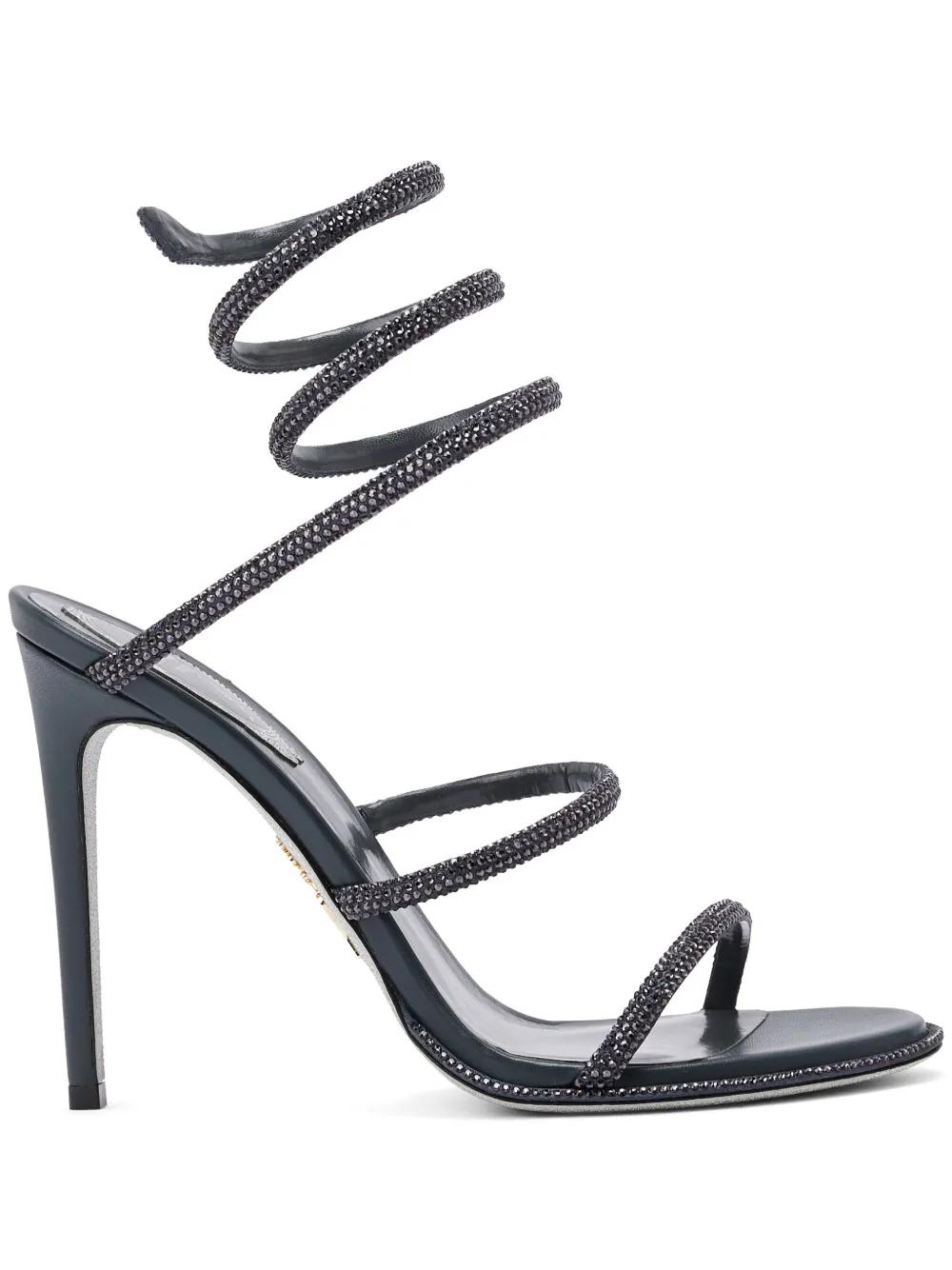 grey leather crystal embellishment branded insole ankle strap open toe stiletto heel