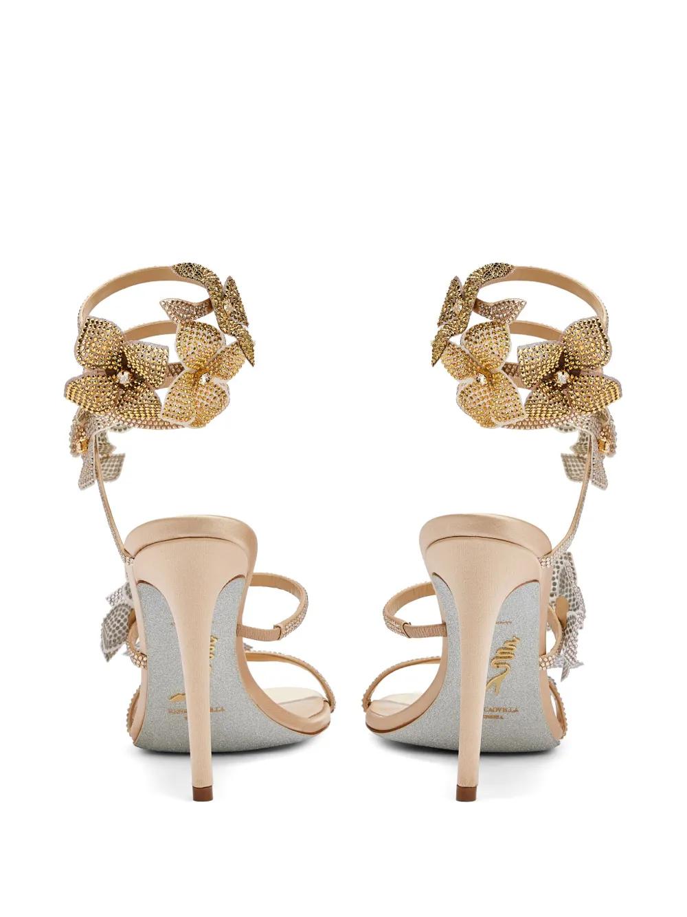 light pink wraparound style crystal embellishment floral appliqué stiletto heel