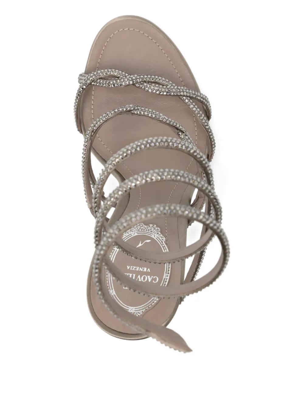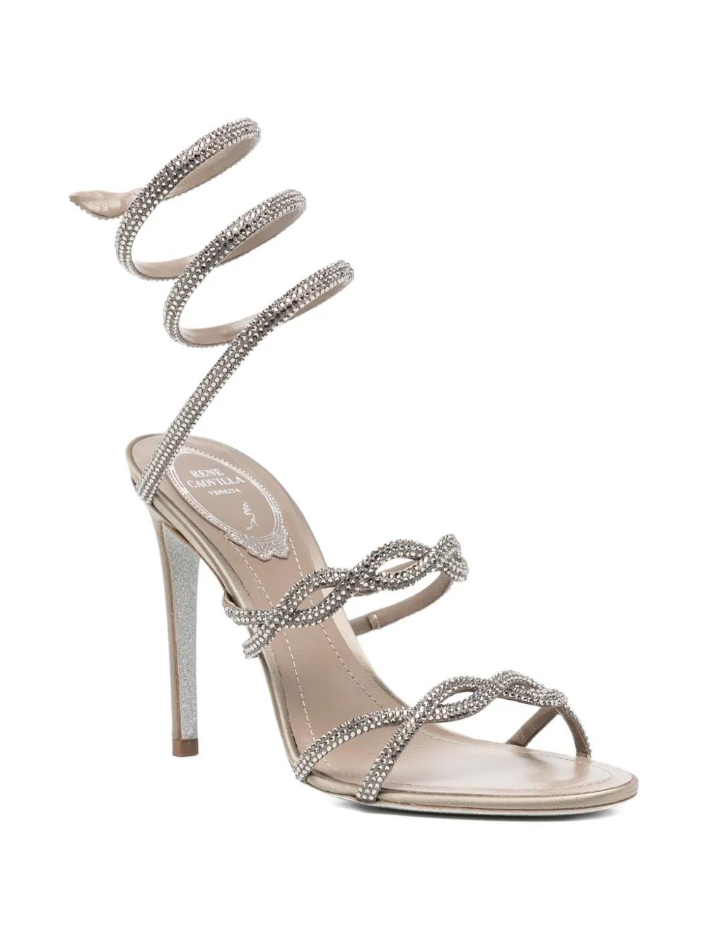 René Caovilla 110mm crystal-embellished spiral-wrap sandals - Neutrals