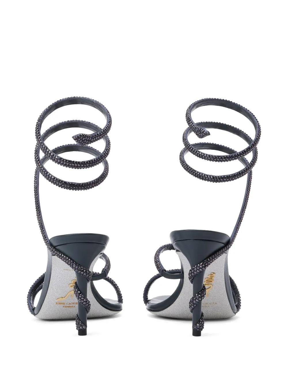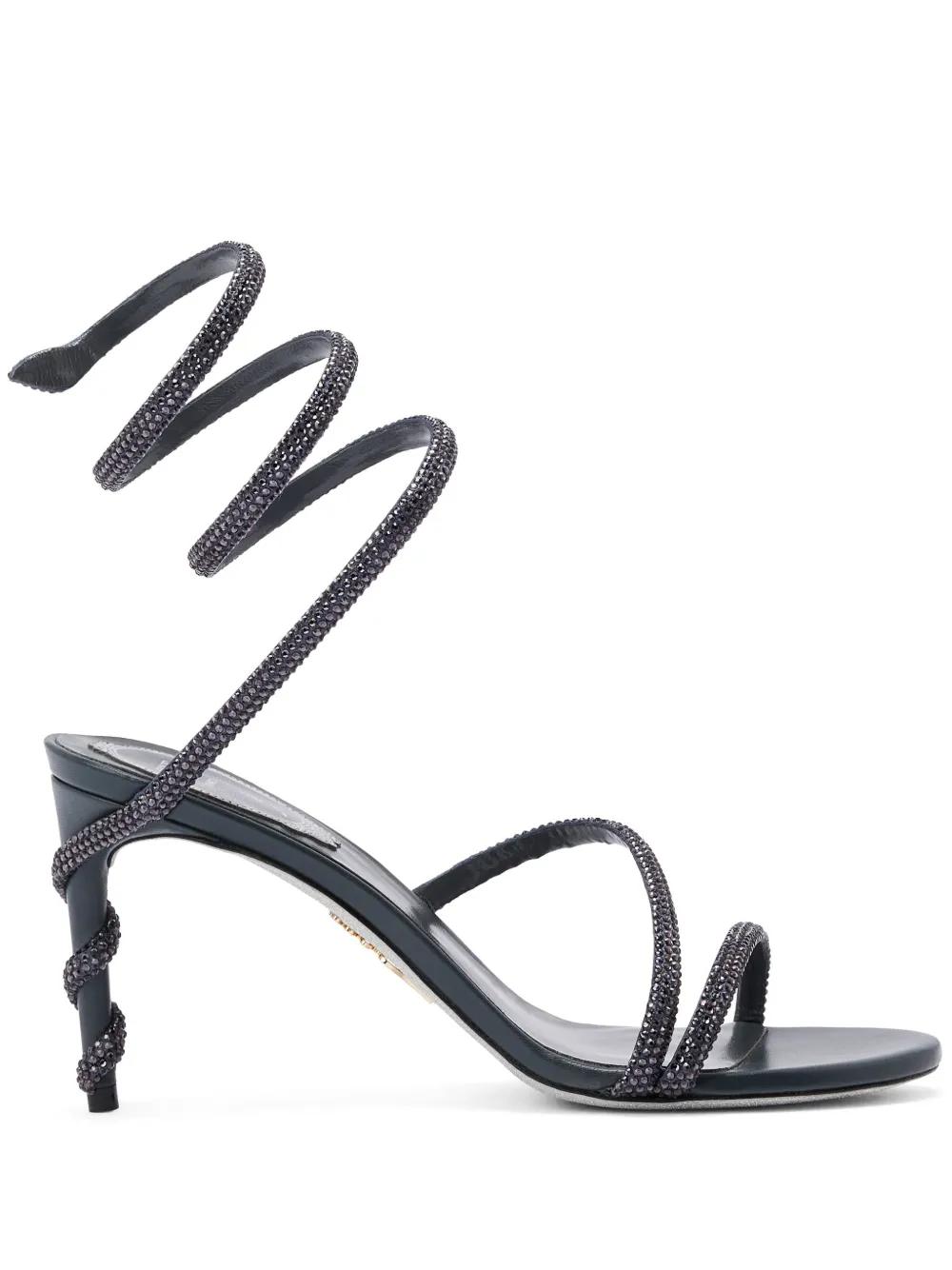 grey leather crystal embellishment stiletto heel branded insole ankle strap