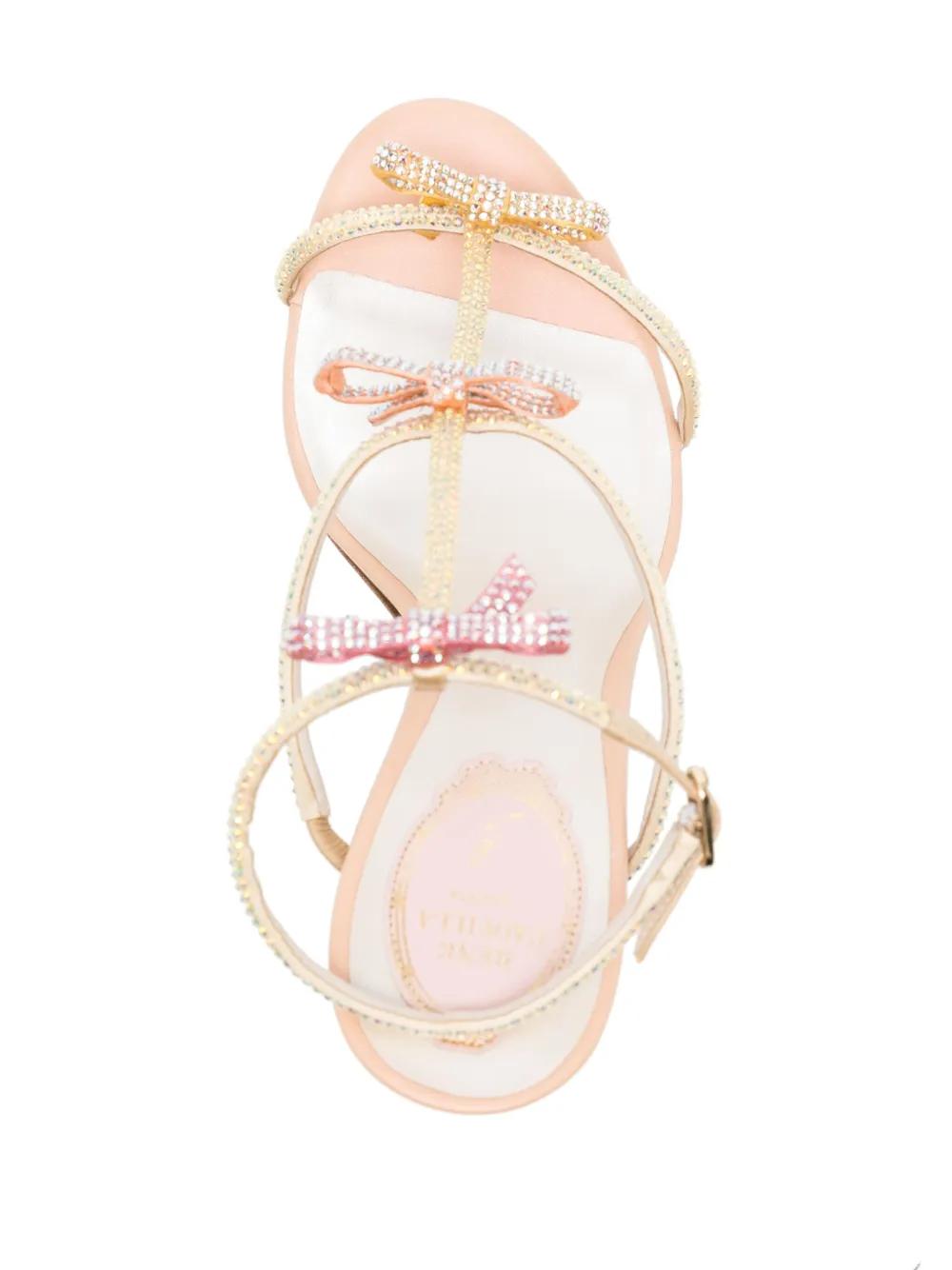 blush beige leather rhinestone embellishment bow detailing open toe buckle-fastening slingback strap branded leather insole high heel