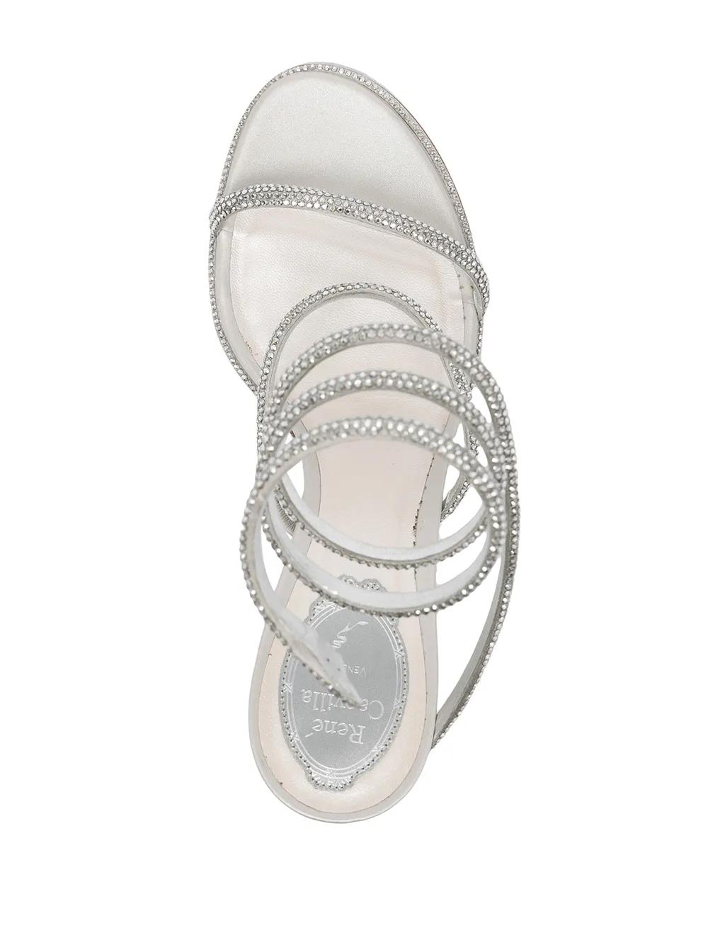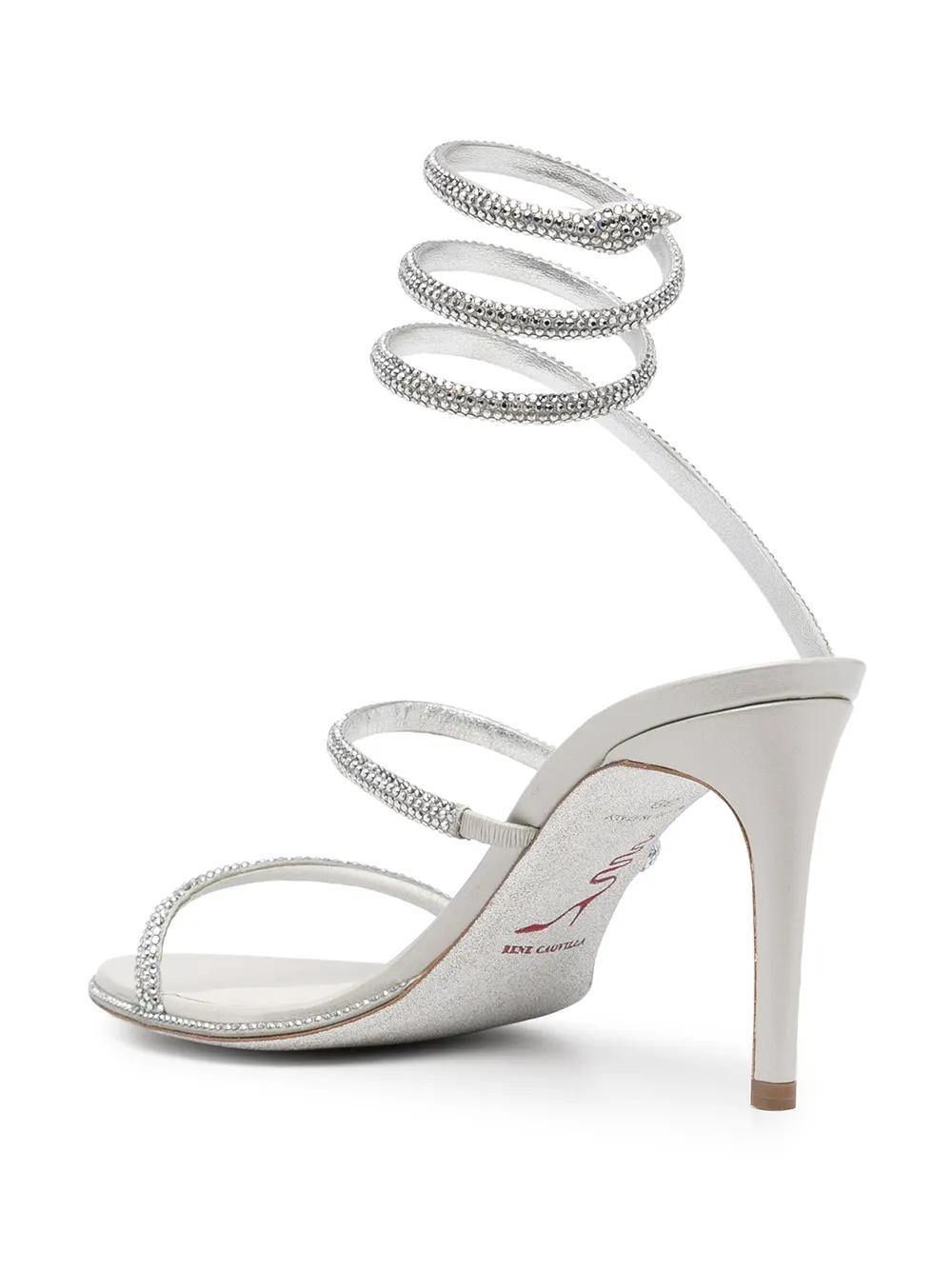 silver silk satin-leather blend wrap design open toe stiletto heel